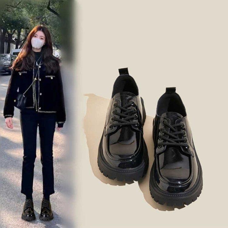 Маленькие кожаные туфли женские в британском стиле весна и осень 2024 новые модные черные универсальные туфли на толстой подошве со шнуровкой женские туфли — купить товар онлайн с бесплатной доставкой до всему миру!