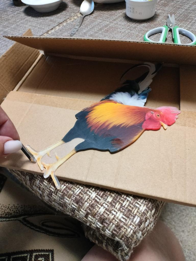 прислали вырезанную из листа пластика картинку, это не объёмная фигура, плоская! Хрупкая сразу же переломилась. Никогда бы не купила в живую, китайцы молодцы, нахлабучили, продали красивую картинку