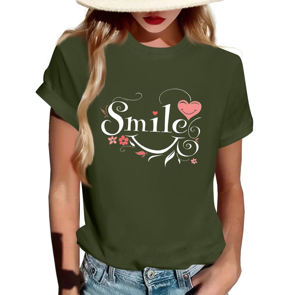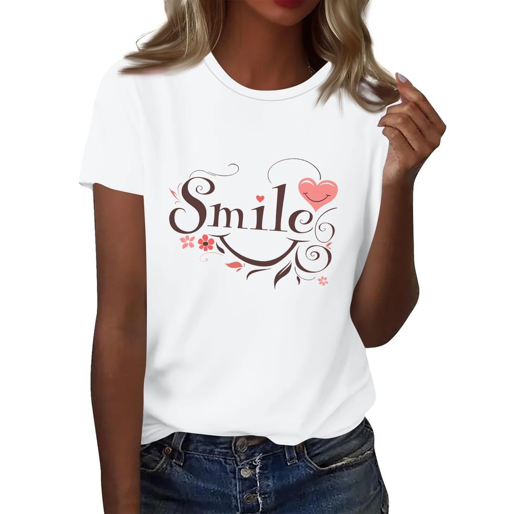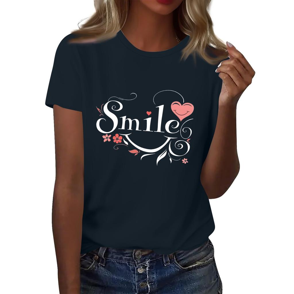 Женская футболка с круглым вырезом и коротким рукавом с принтом в виде буквы «улыбка»