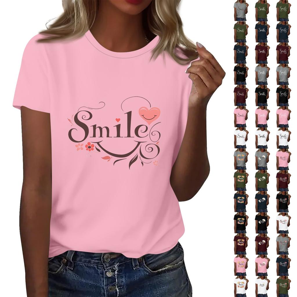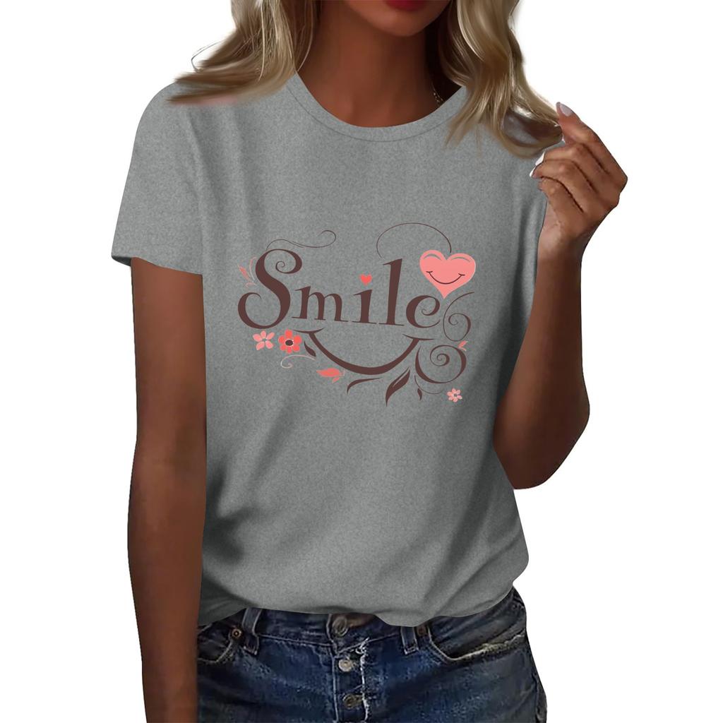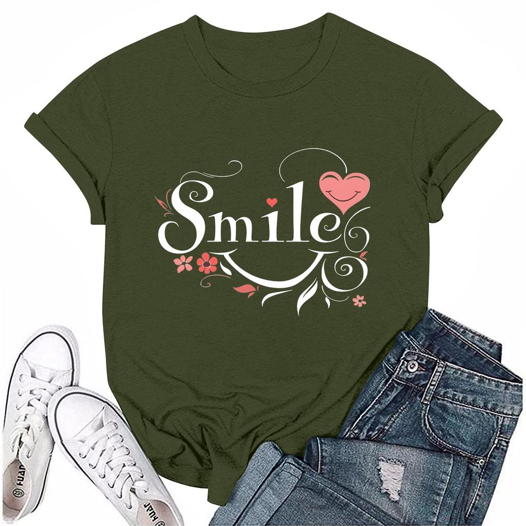 Женская футболка с круглым вырезом и коротким рукавом с принтом в виде буквы «улыбка»