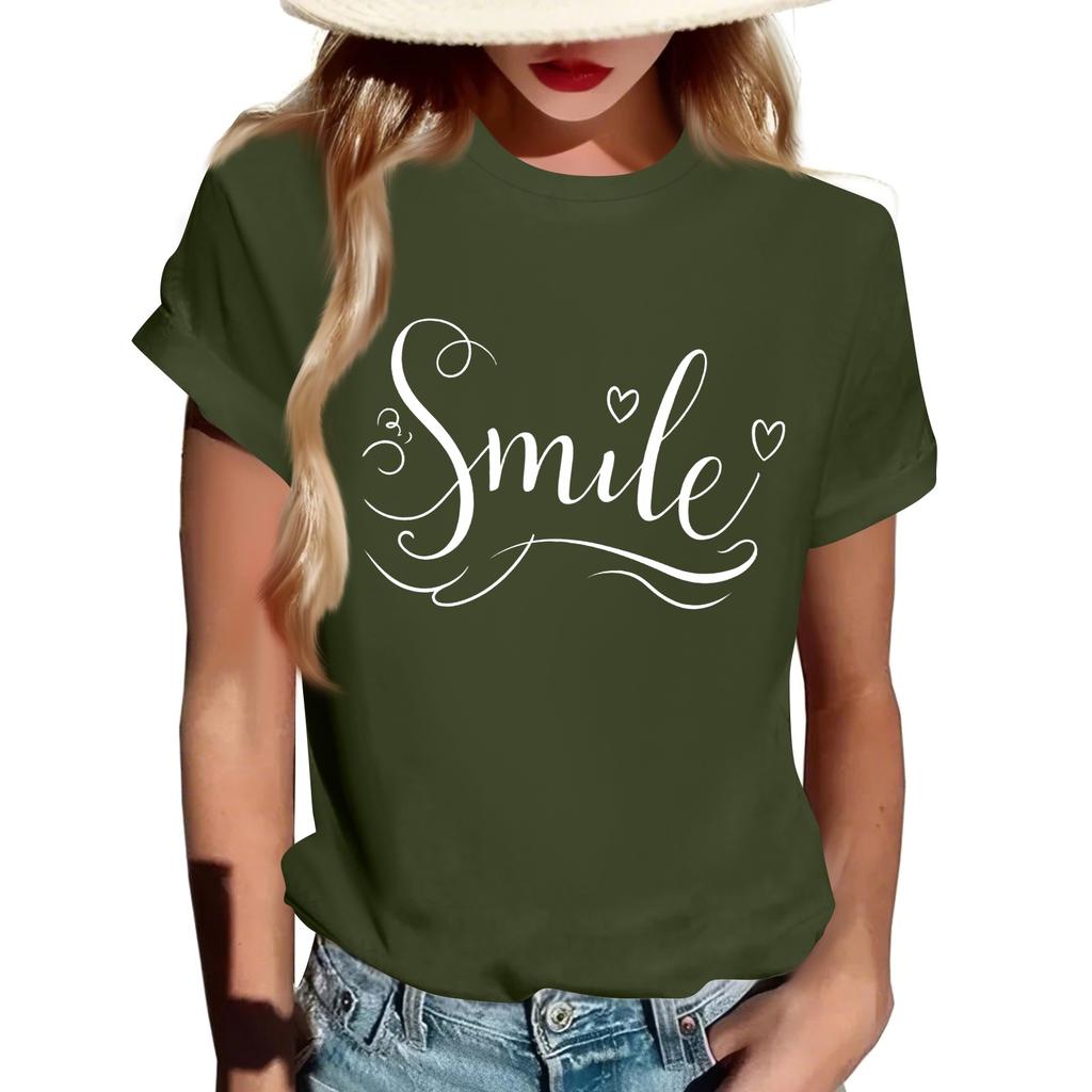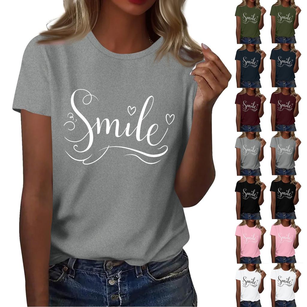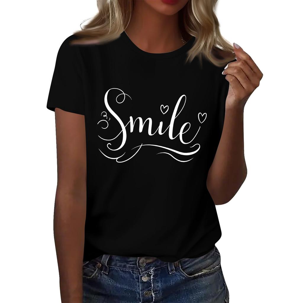 Женская футболка с круглым вырезом и коротким рукавом с принтом в виде буквы «улыбка»