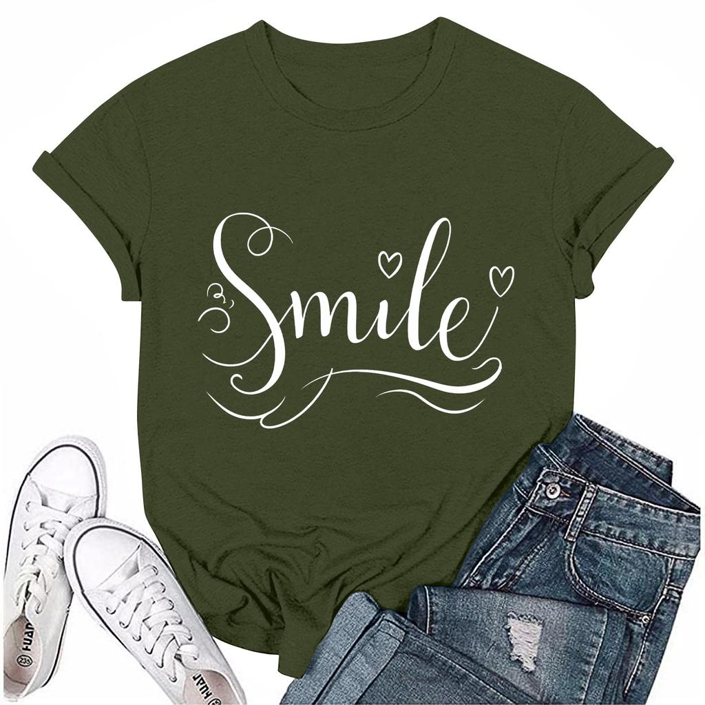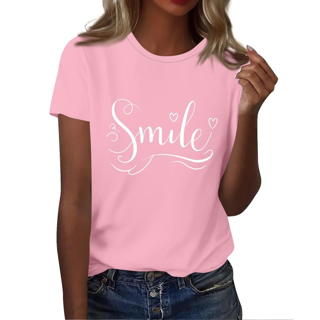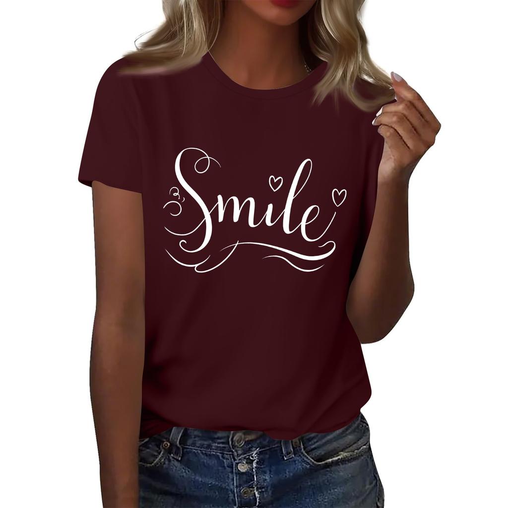 Женская футболка с круглым вырезом и коротким рукавом с принтом в виде буквы «улыбка»
