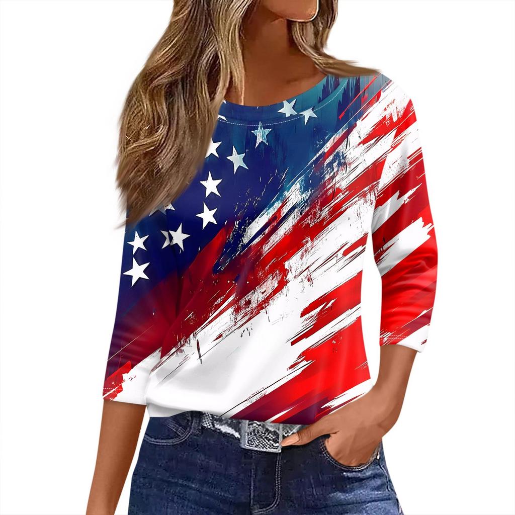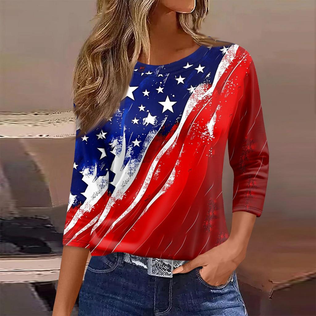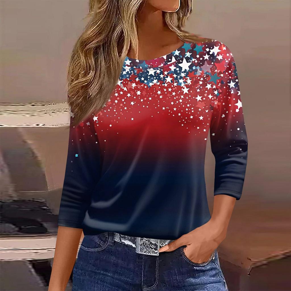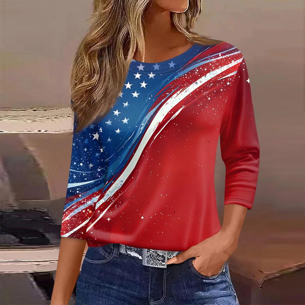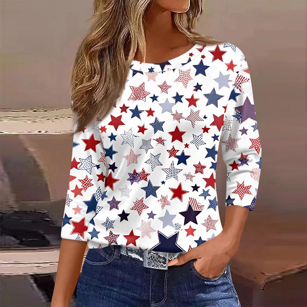 Женская футболка с принтом, рукав 3/4, повседневная мода, базовый круглый вырез, обычный топ