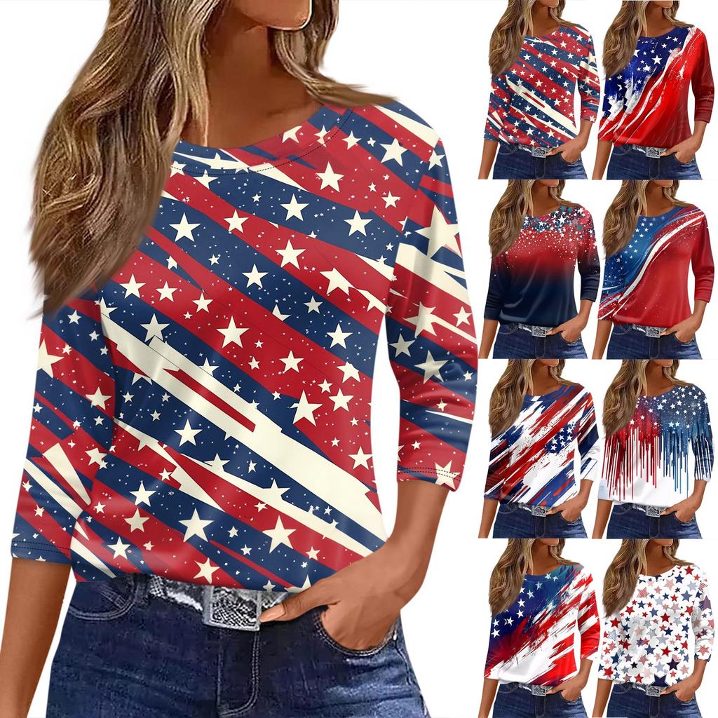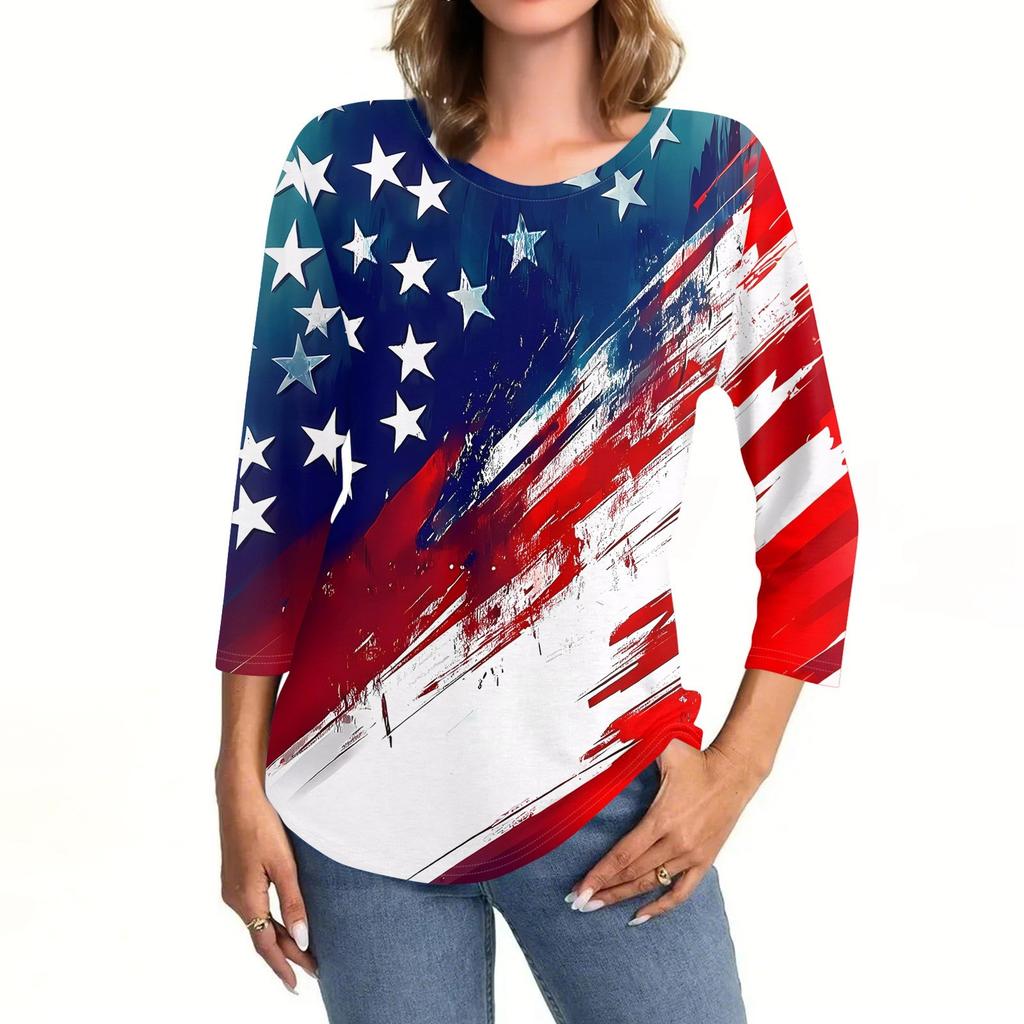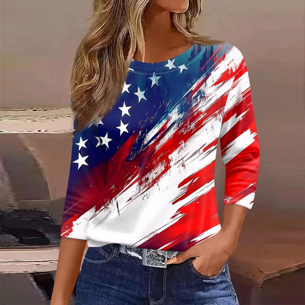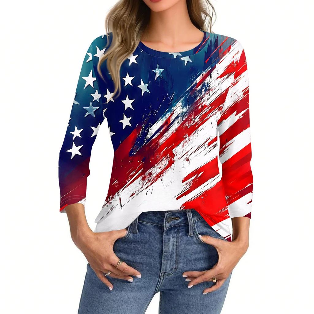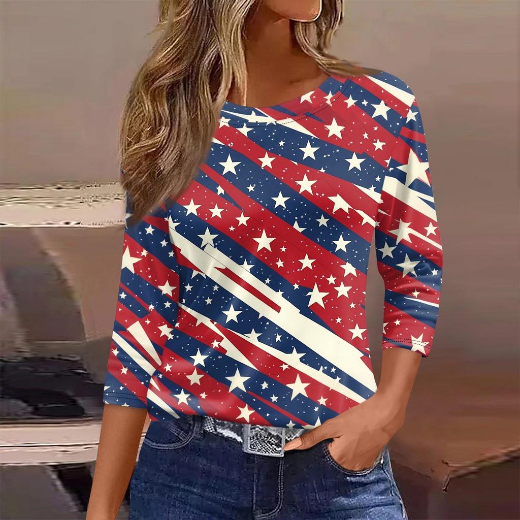 Женская футболка с принтом, рукав 3/4, повседневная мода, базовый круглый вырез, обычный топ
