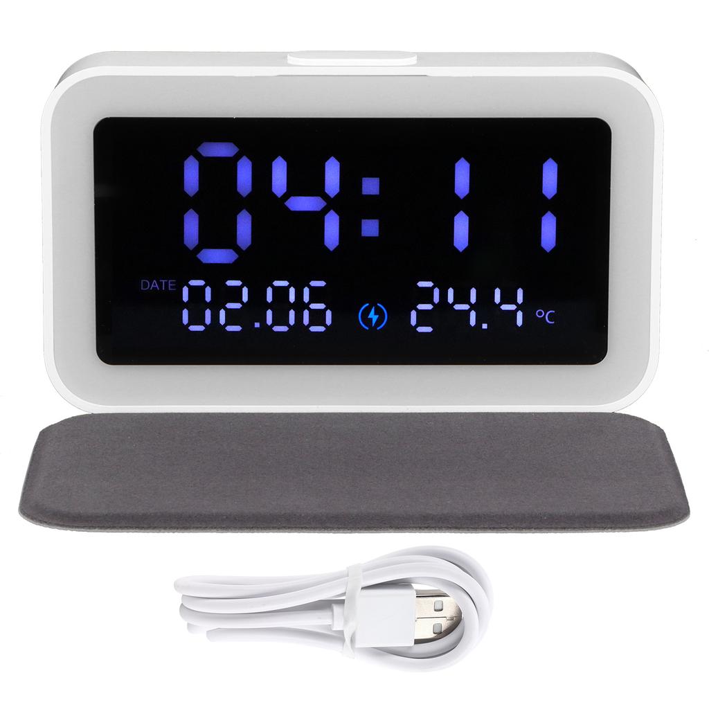 Светодиодный ночник-будильник с беспроводным зарядным устройством 15 Вт, термометром для спальни дома