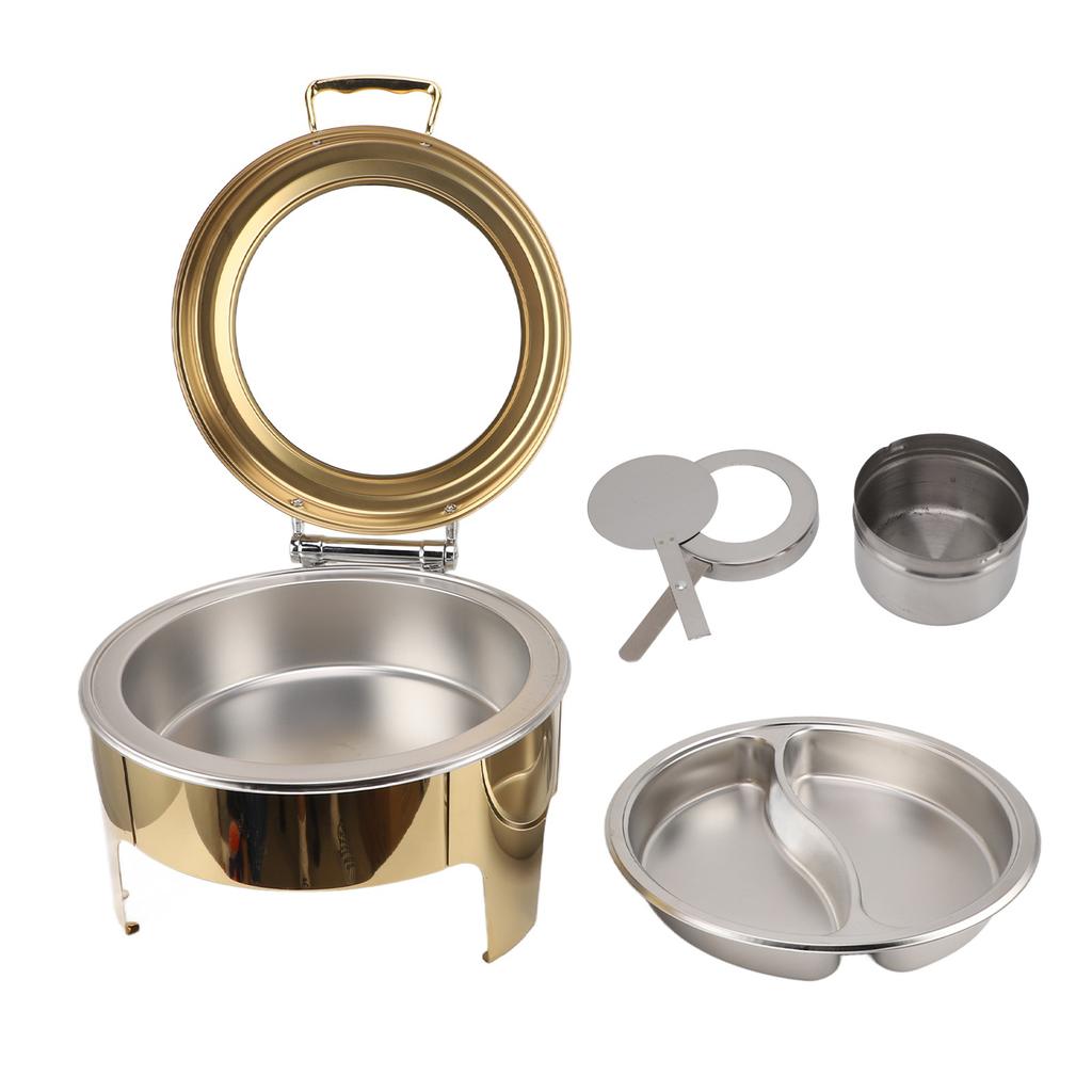 Круглый шведский стол, жаровня, золотистый, визуальный, откидная крышка на 90 градусов, нержавеющая сталь, 6 л, подогрев для алкоголя, шведский стол