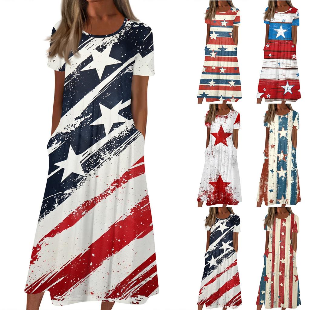 Женское летнее повседневное модное платье с коротким рукавом и карманом на День независимости с коротким рукавом — купить товар онлайн с бесплатной доставкой до всему миру!