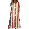 Женское летнее повседневное модное платье с коротким рукавом и карманом на День независимости с коротким рукавом