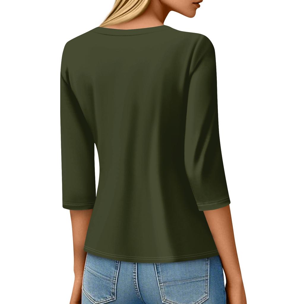 Женская мода свободный повседневный топ с семью рукавами и круглым вырезом