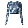Модные женские укороченные топы с сетчатым принтом, круглым вырезом, длинными рукавами, пуловеры, сексуальная уличная одежда y2k Harajuku Tops
