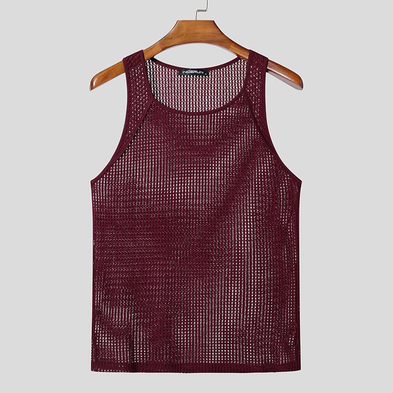INCERUN Мужские топы с круглым вырезом без рукавов из сетчатой пряжи с ажурной отделкой, футболки — купить товар онлайн с бесплатной доставкой по всему миру!