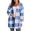 Женские зимние пальто, теплые плюшевые куртки, открытый спереди, длинный рукав, кардиган, модная клетчатая пушистая верхняя одежда