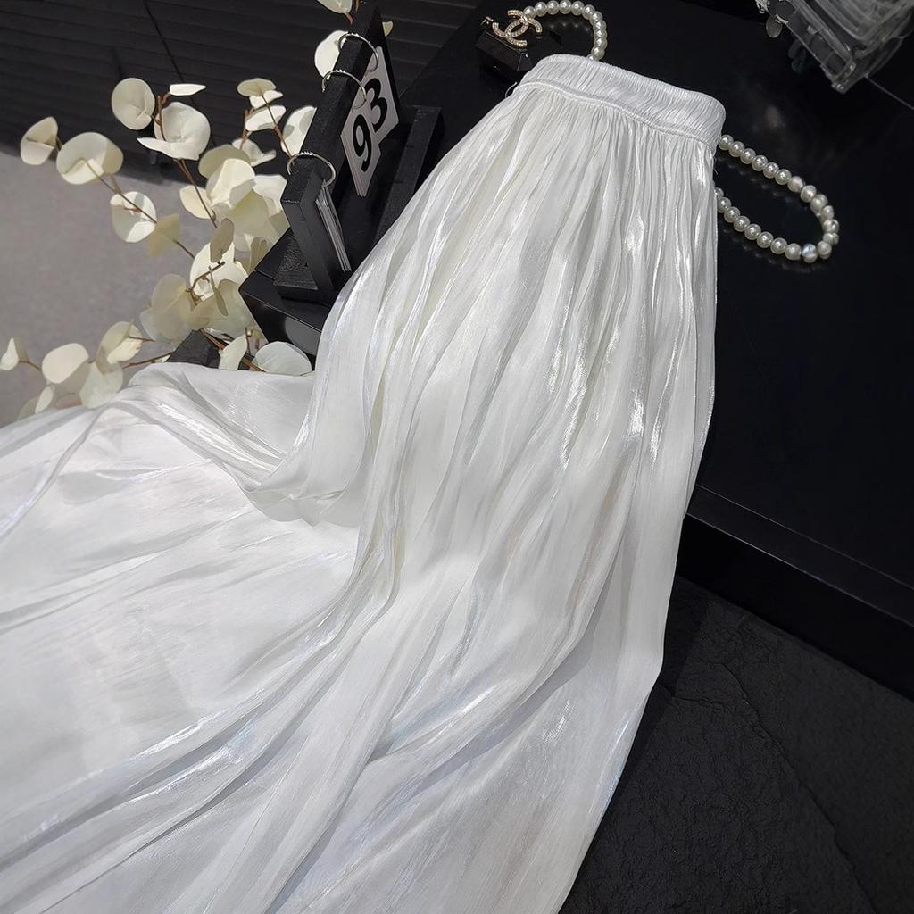 Юбка-плиссе из перламутровой пряжи в складку, летняя женская, средней и длинной длины, с высокой талией, новинка 2025 года