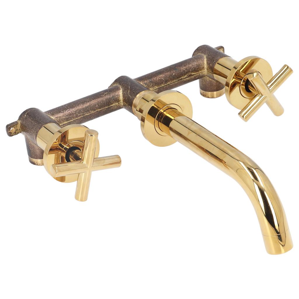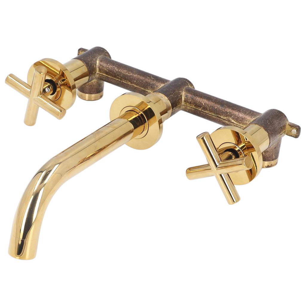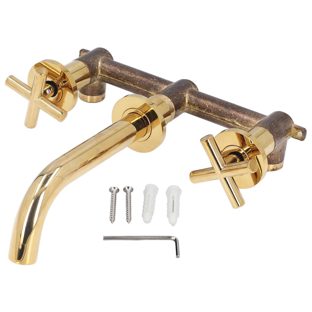 Водопроводный кран медный кран с двойной крестообразной ручкой G1/2 резьба скрытый монтаж для ванной комнаты золото