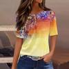 Футболки для женщин, плиссированные, с круглым вырезом, нарядные, повседневные, блузки с принтом, с коротким рукавом, летние топы, свободный крой