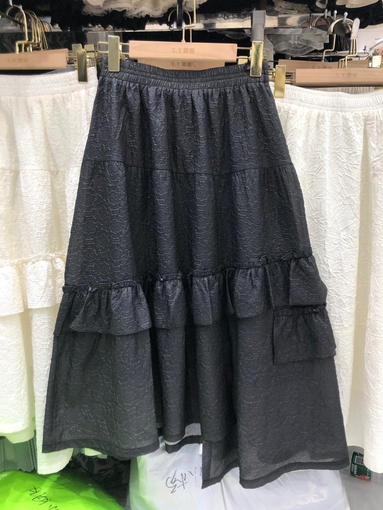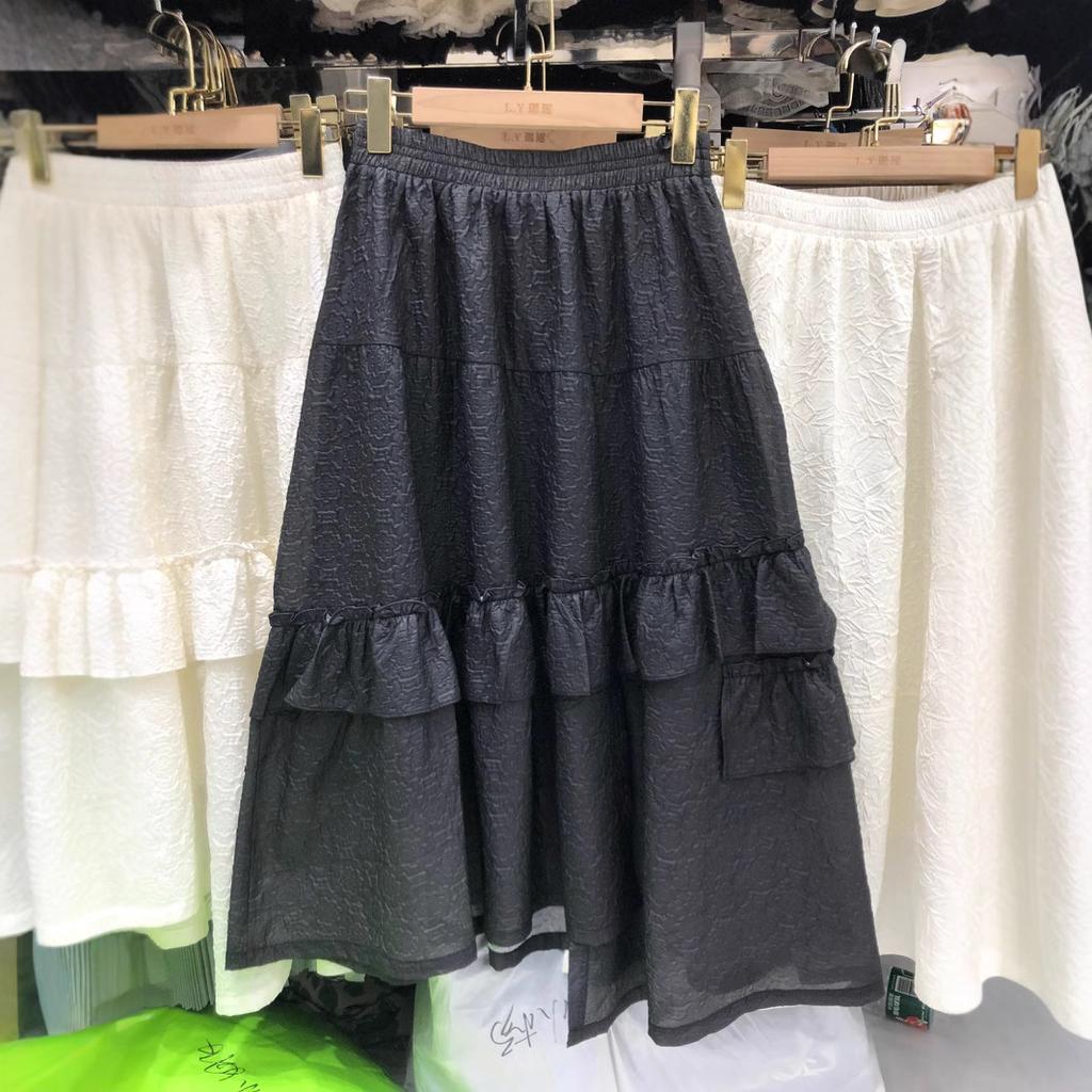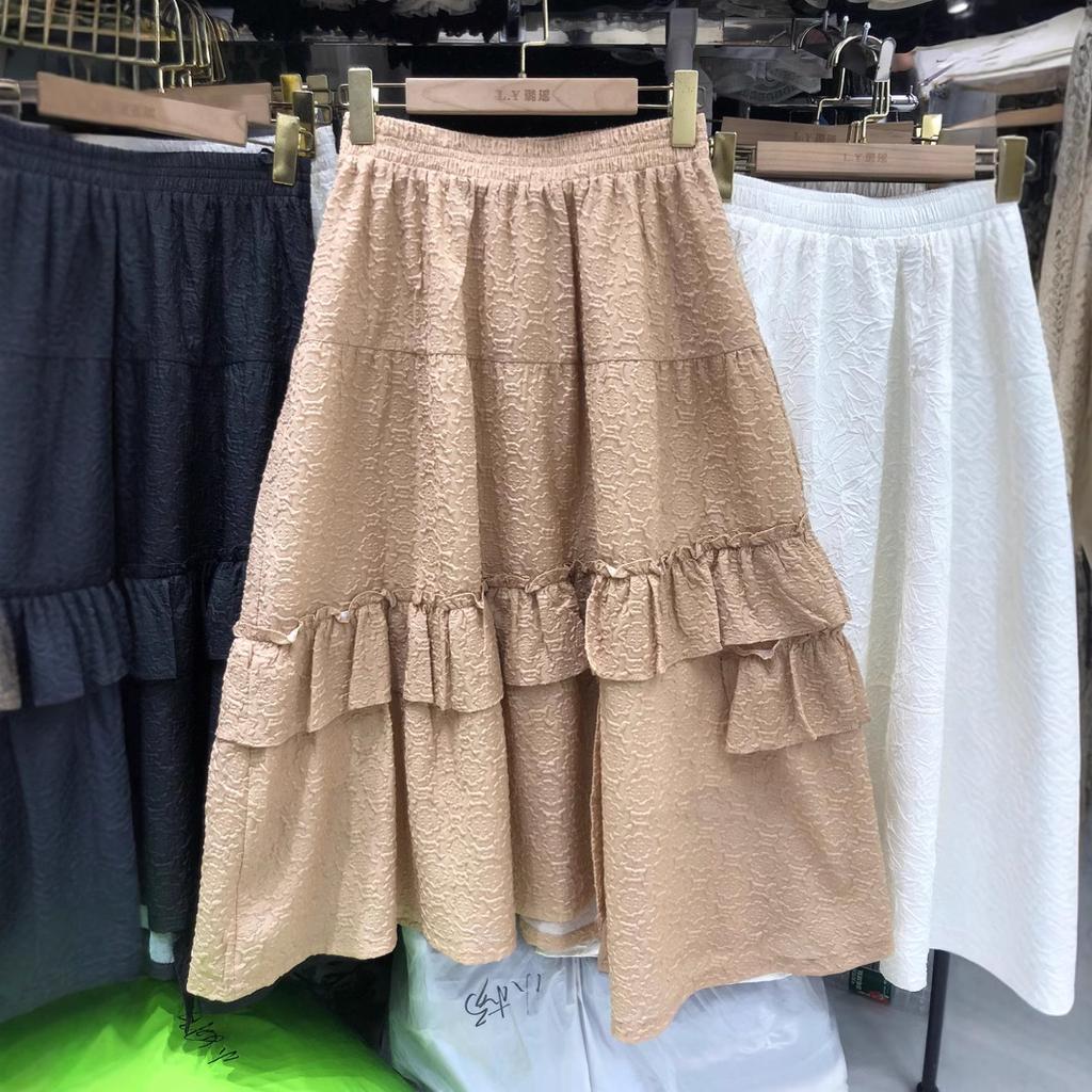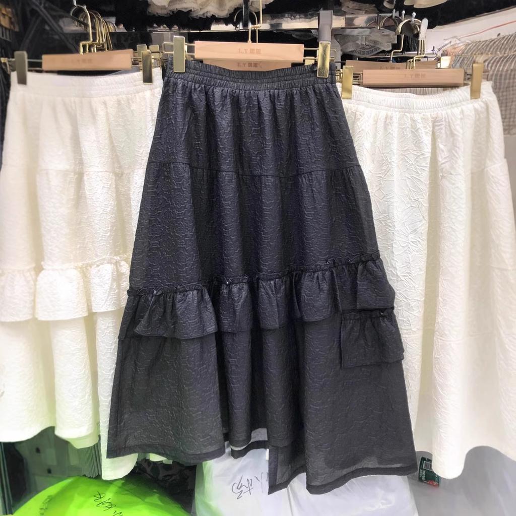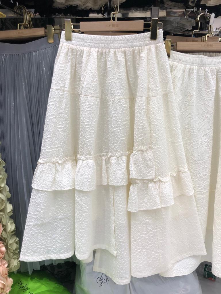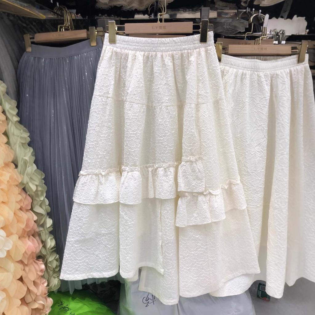 Французская легкая роскошная текстура плиссированная жаккардовая юбка элегантный темперамент нерегулярные оборки края сращивание a-word длинная юбка