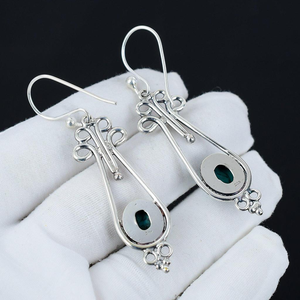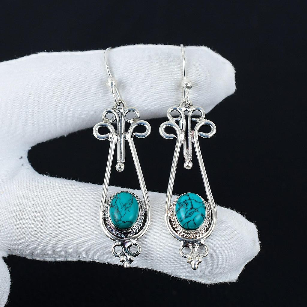 Серьги с натуральными бирюзовыми камнями, серьги из стерлингового серебра 925 пробы, серьги-подвески из серебра ручной работы в стиле бохо, подарки из ваты