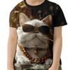 Детская одежда Футболка для девочек и мальчиков с коротким рукавом Детская летняя одежда Футболка с рисунком кота в виде 3D-мультяшной футболки
