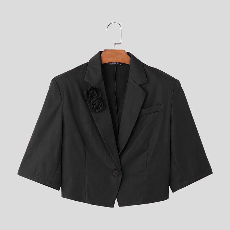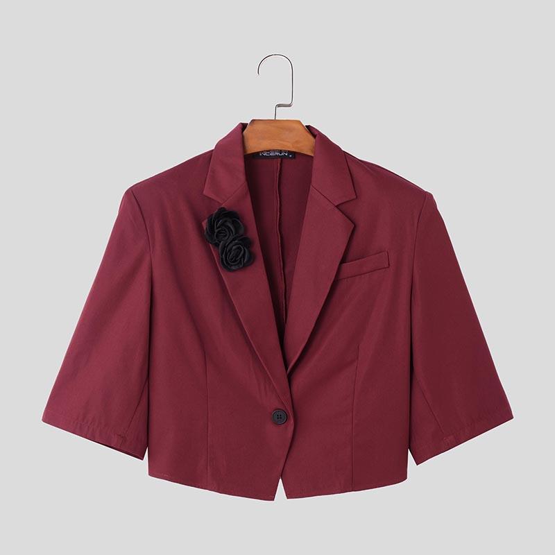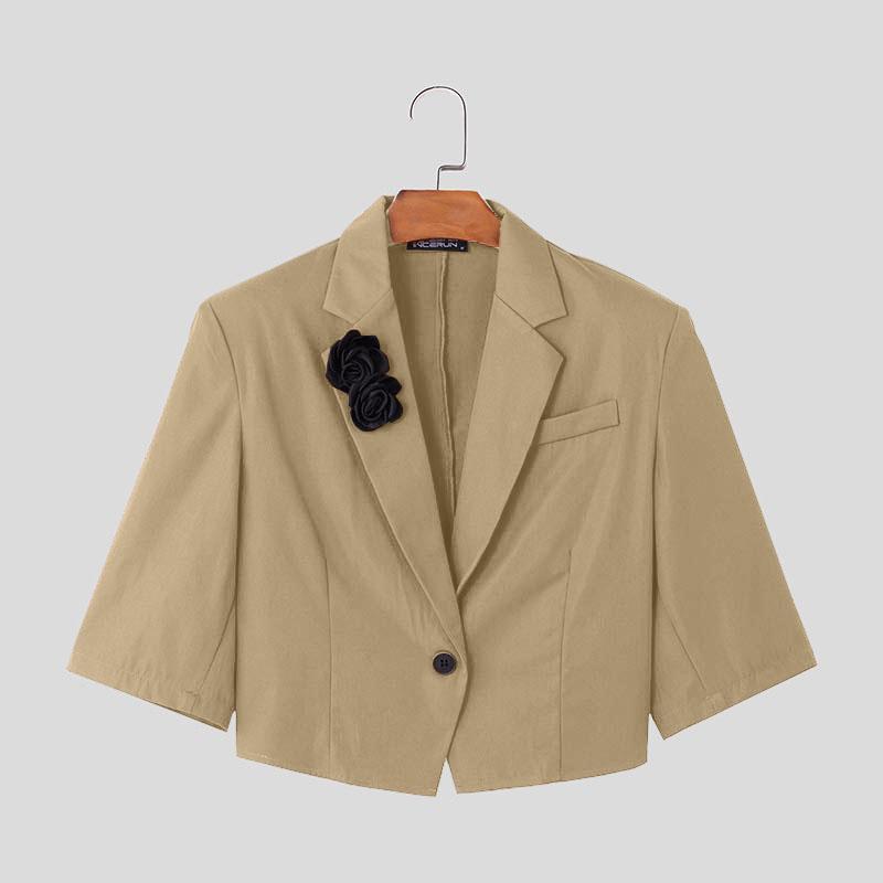 INCERUN Мужские летние лацканы с коротким рукавом на одной пуговице с цветочным принтом повседневные короткие тонкие пиджаки для вечеринок