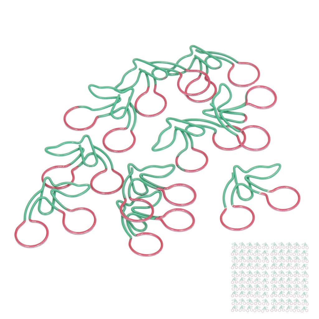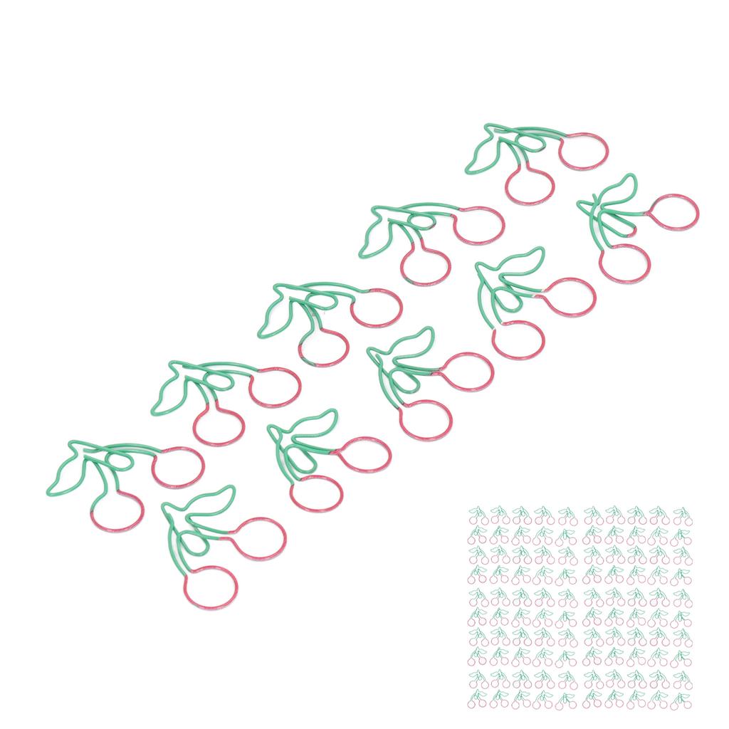 100 шт. скрепок в форме вишни, 2 цвета, милые, легкие, нескользящие, металлические скрепки для офиса