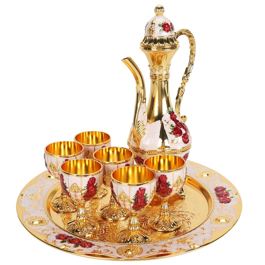 Винтажный набор для винных горшков, европейский ретро-набор для кофейников, изысканные резные винные чашки из цинкового сплава для