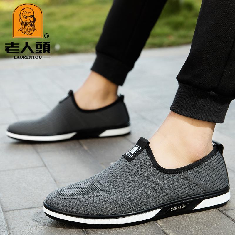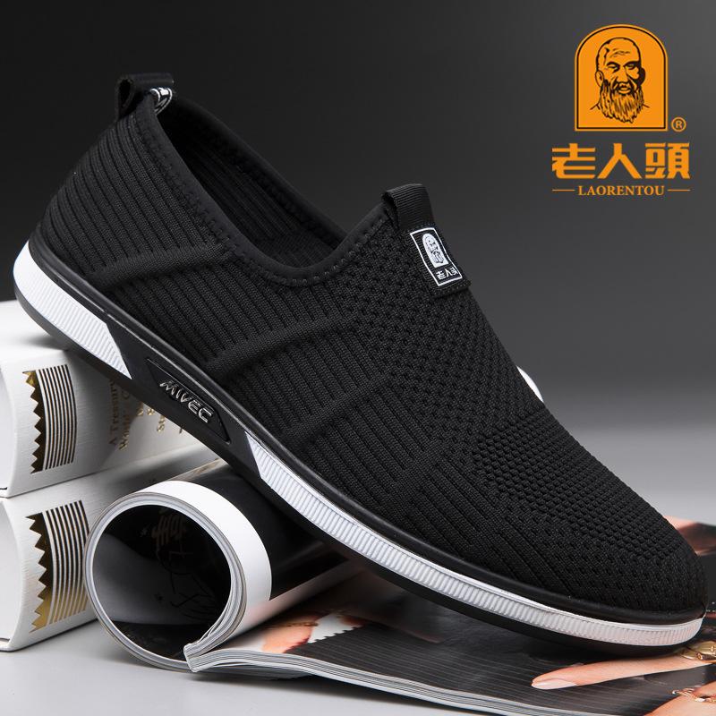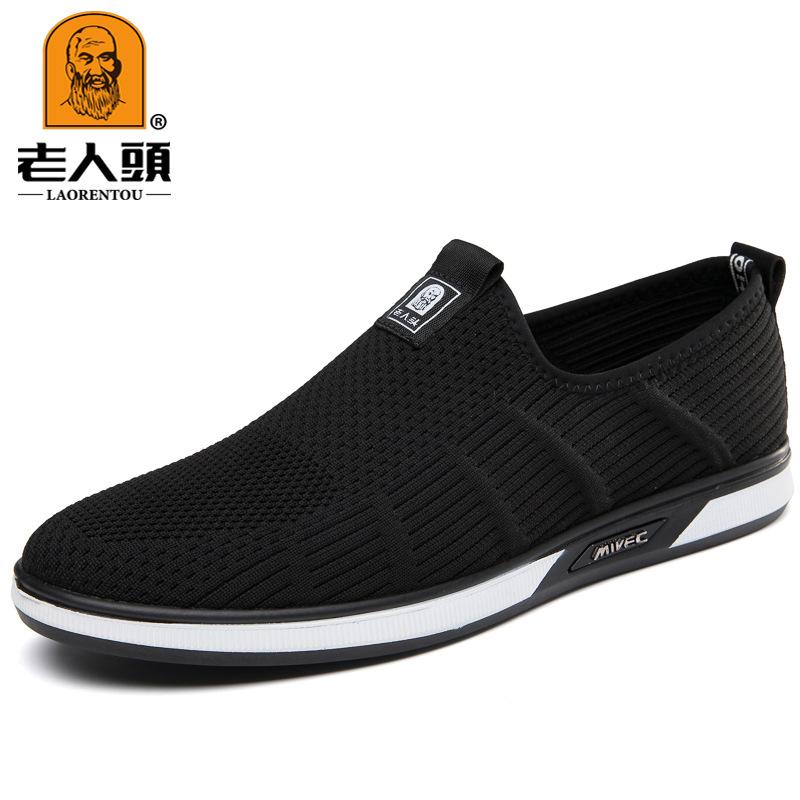 Легкие мужские туфли с мягкой подошвой и одной педалью.. Низкие дышащие тканевые туфли с мушковым плетением для пожилых людей. Настоящие одинарные туфли из хлопчатобумажной ткани