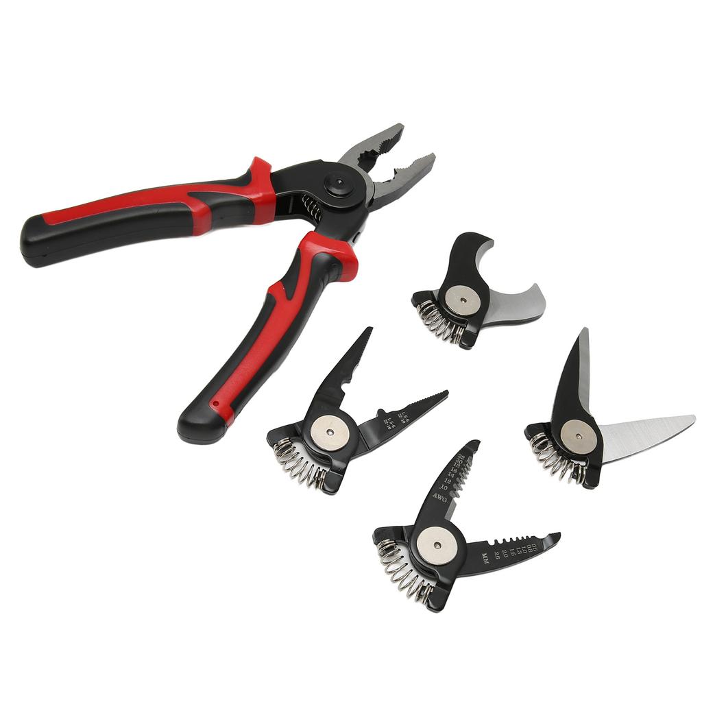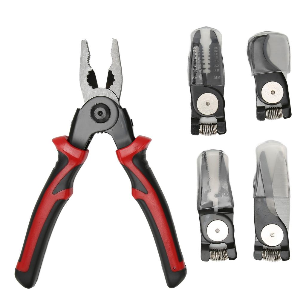 Кусачки для проволоки, инструментальная сталь, 5 сменных головок, противоскользящая ручка из термопластичной резины, комбинированные плоскогубцы для кожи