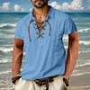 Летняя мужская рубашка из 100% хлопка и льна, однотонная, со шнуровкой и отложным воротником, льняная рубашка сверху