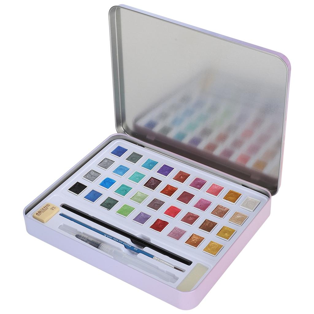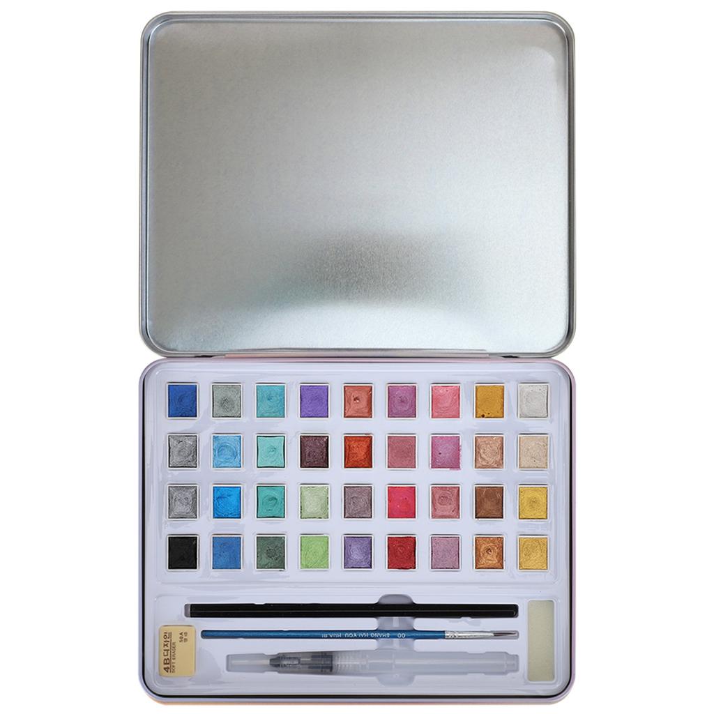 Набор акварельных красок 36 перламутровых цветов, сплошной блок, жестяная коробка, инструменты для рисования, художественные принадлежности