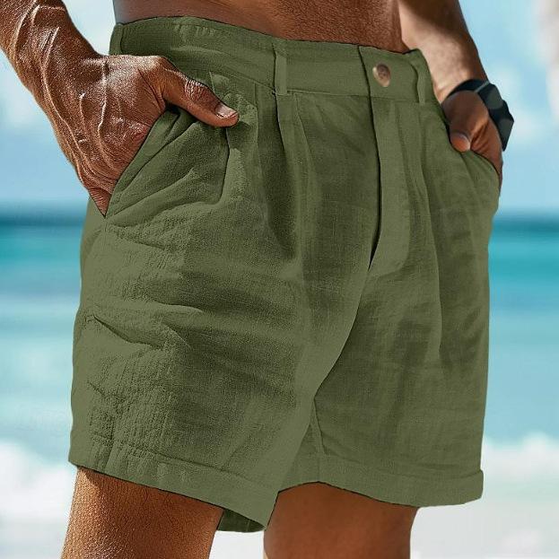Мужские летние шорты, пляжные шорты с карманами на пуговицах, удобные шорты из смеси хлопка и льна для отдыха