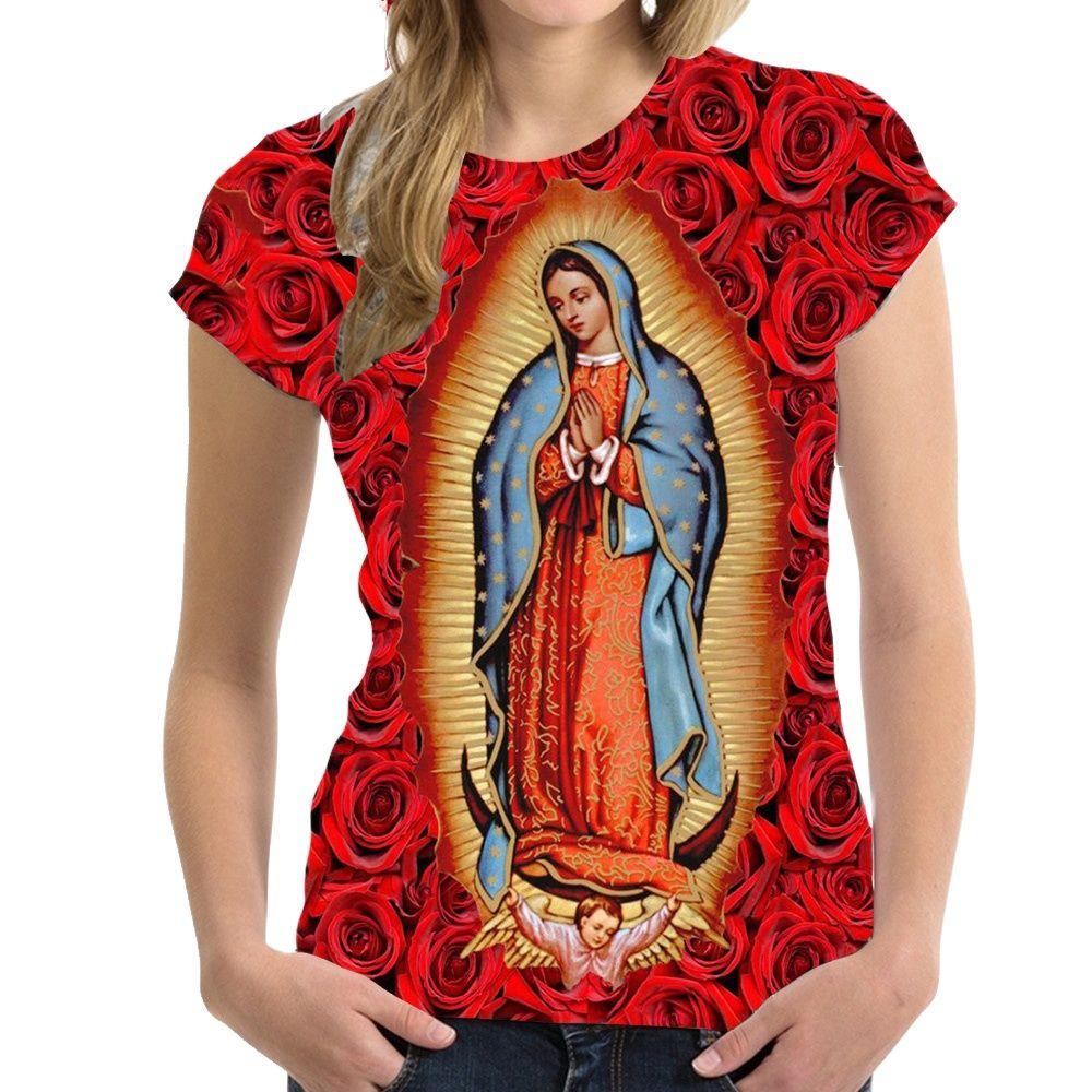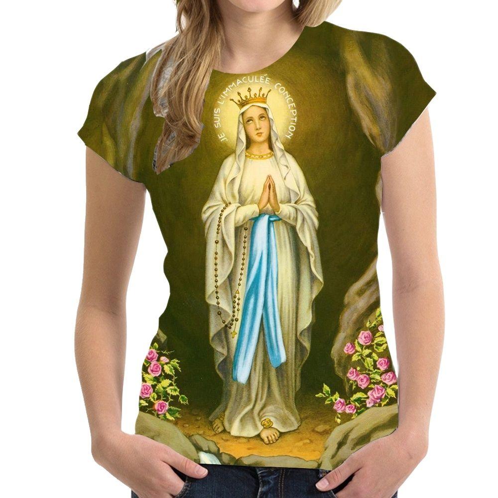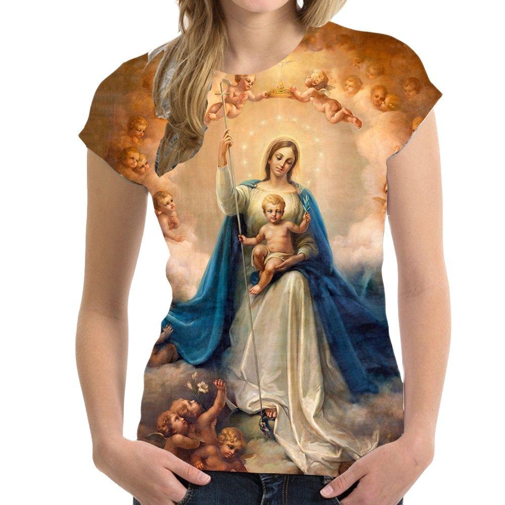 Летний топ с круглым вырезом и 3D-принтом Девы Марии, модная повседневная женская футболка с коротким рукавом