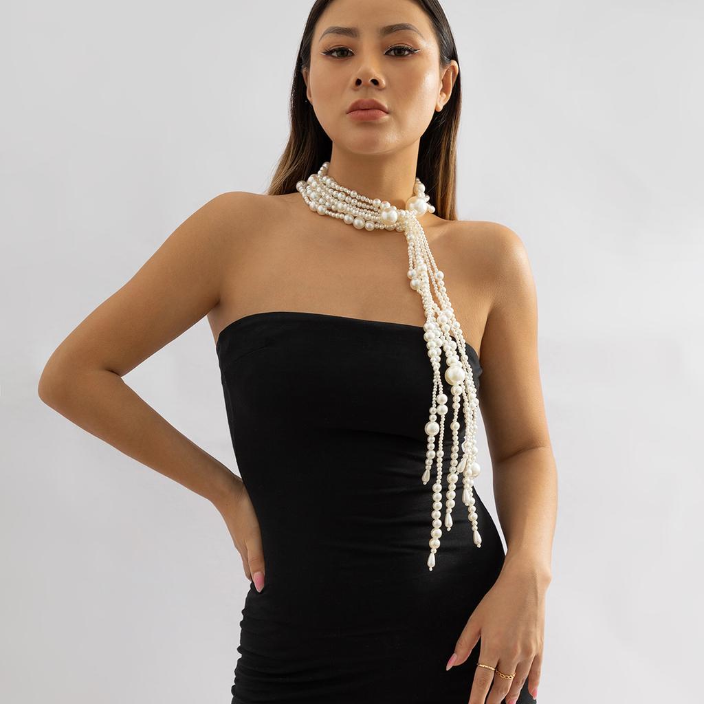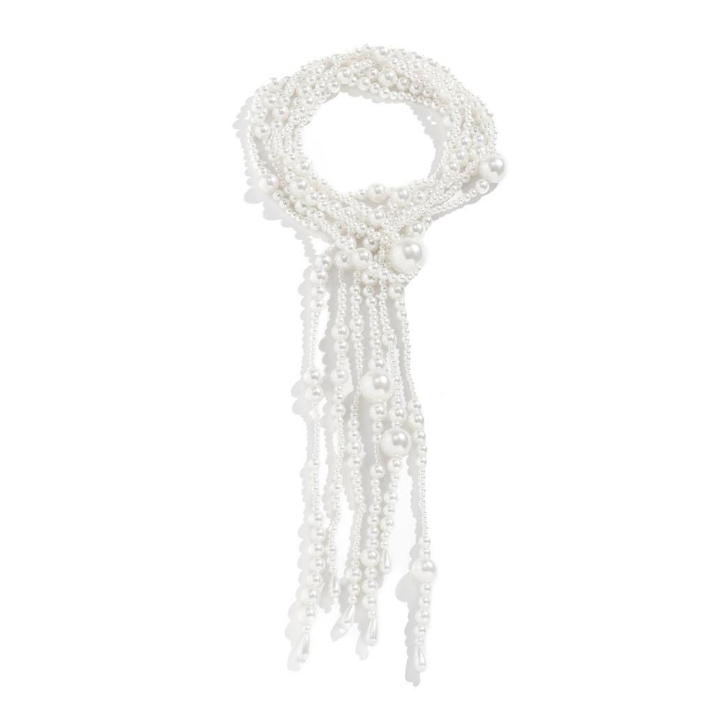 Преувеличенное модное ожерелье с кисточками, длинное ретро-ожерелье-шарф с искусственным жемчугом для женщин