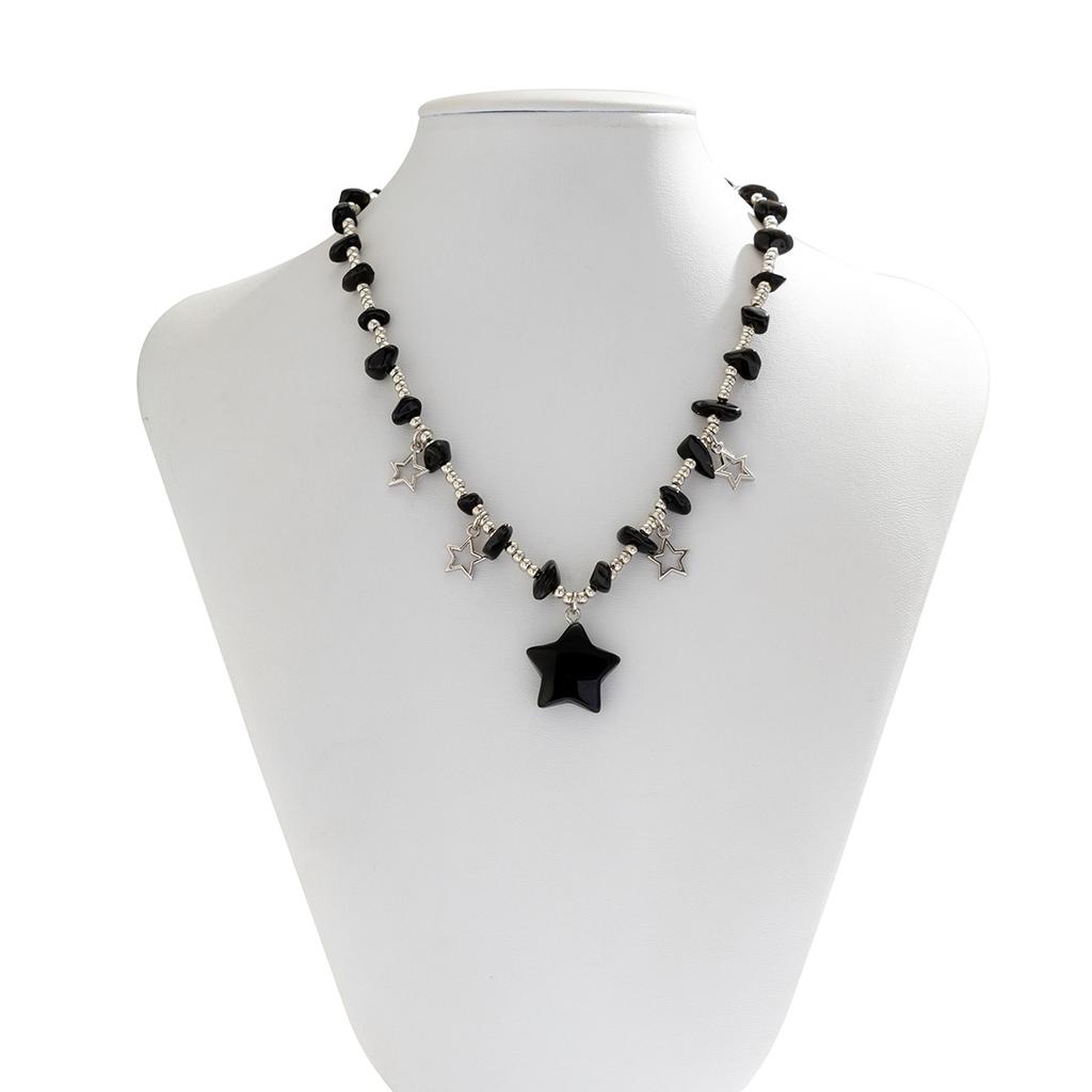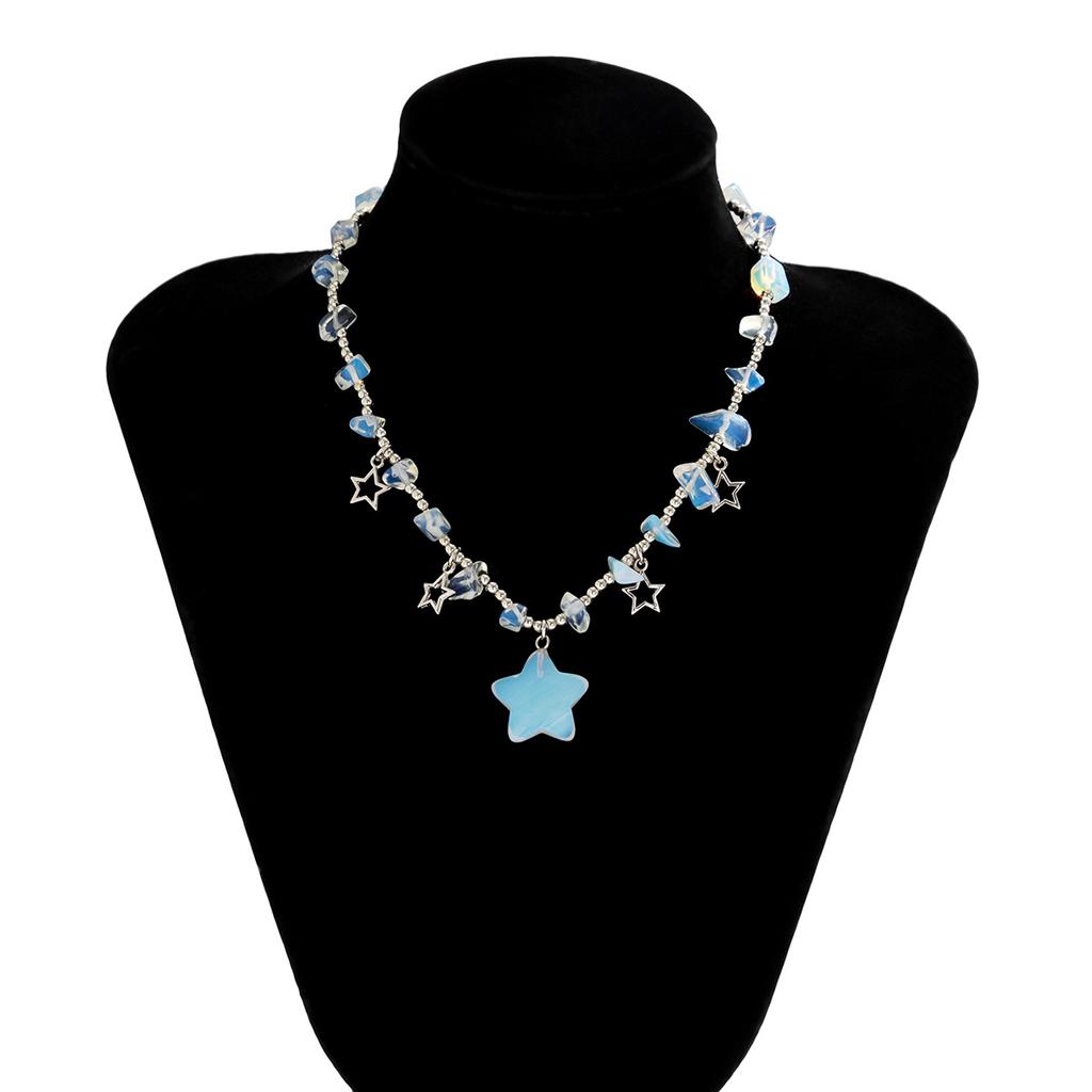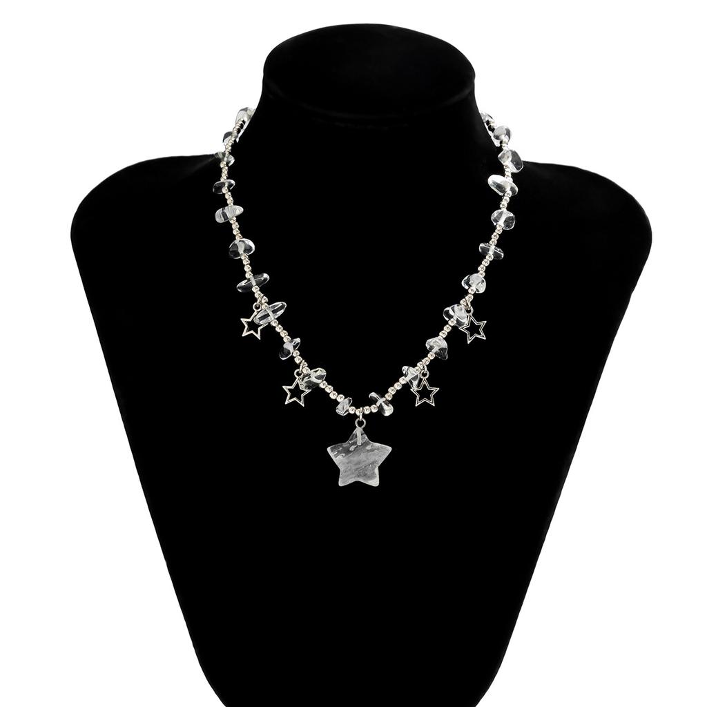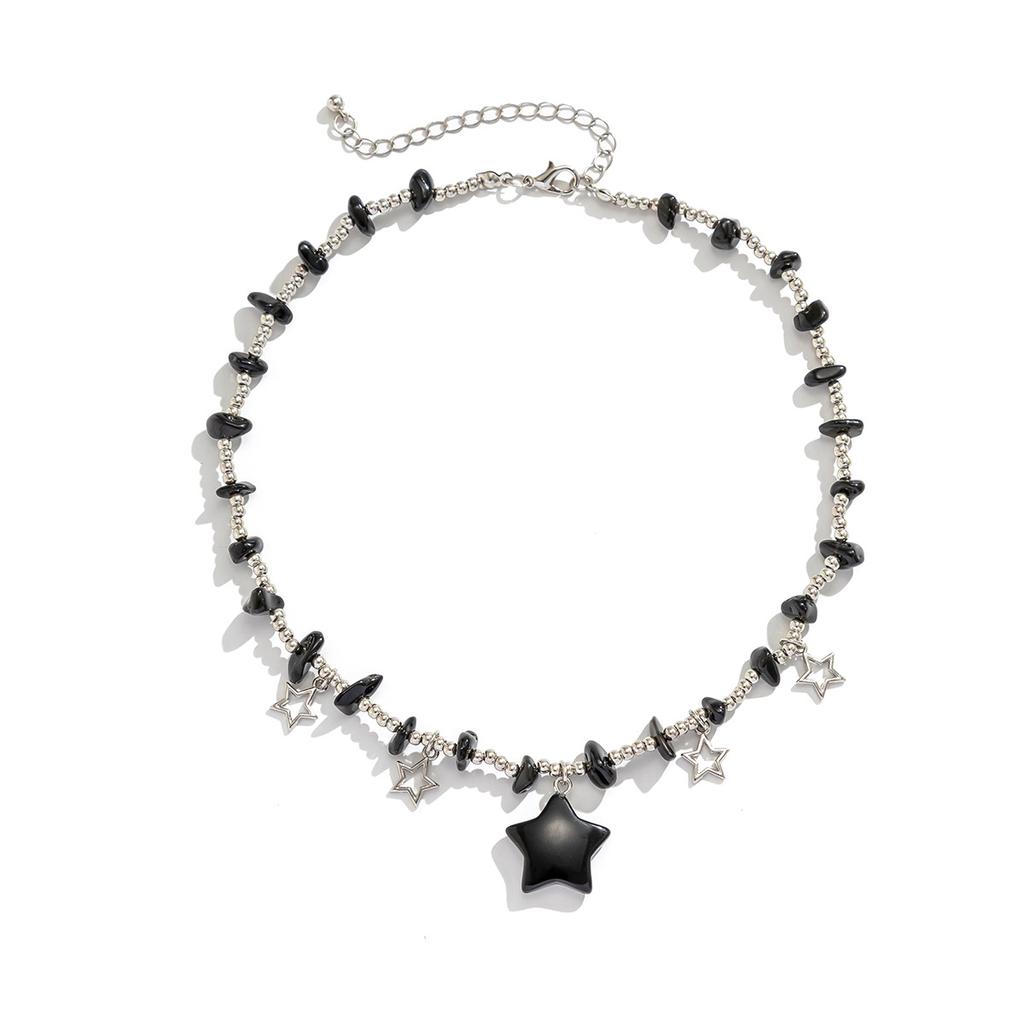 Цветная цепочка на ключицы неправильной формы из гравия и бисера. Универсальное короткое ожерелье со звездой в пасторальном стиле.