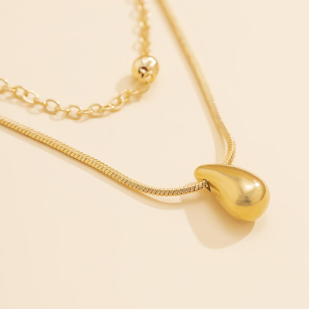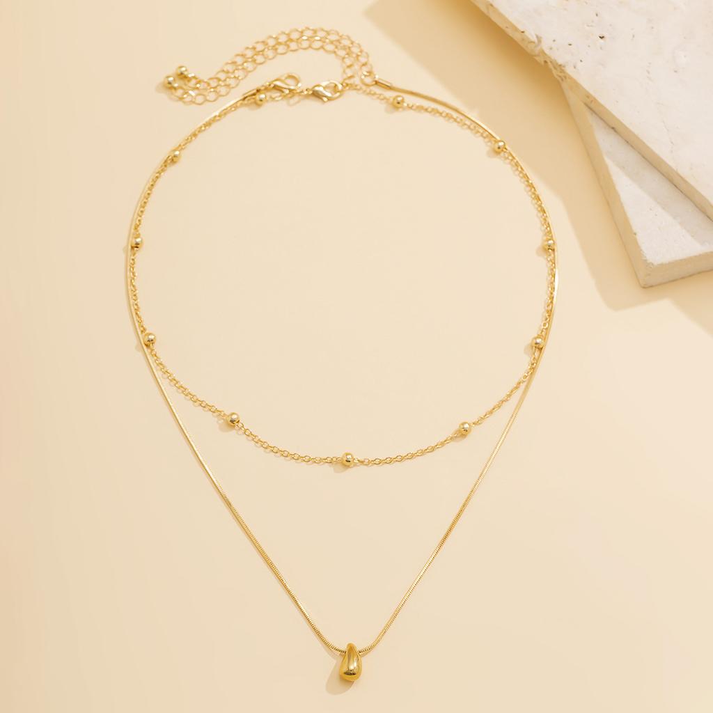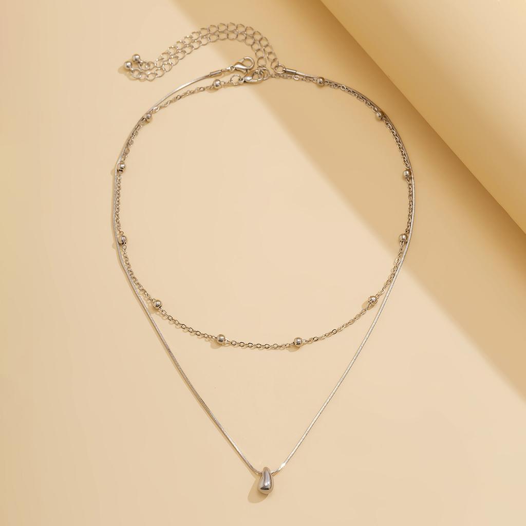 Простая подвесная плоская круглая цепочка с бусинами в форме капли воды, персонализированное ожерелье в металлическом стиле