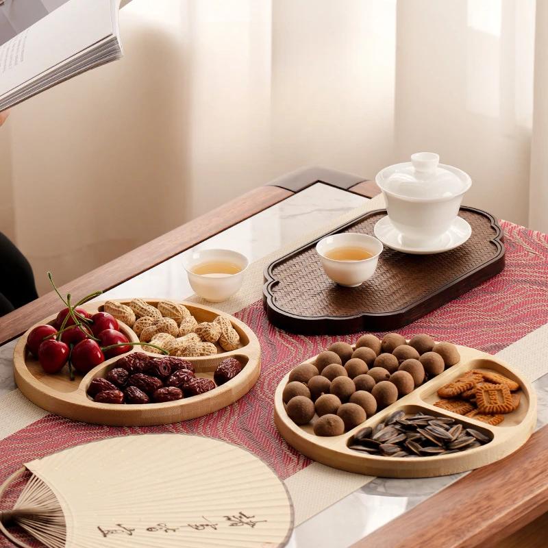 Деревянная решетка Поднос для сухофруктов Бытовая Гостиная Конфеты Орехи Дим Сам Семена дыни Общий Поднос для чая Кухня Хранение