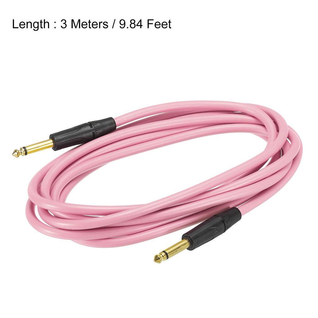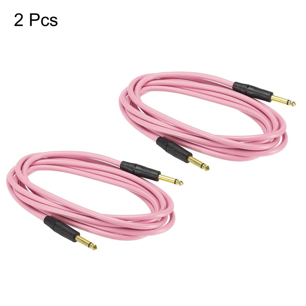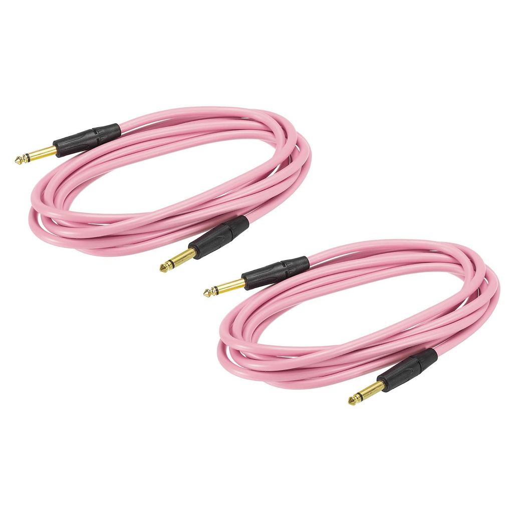 uxcell Guitar Instrument Cable 3M TRS Angle Electric Bass Cable Cord for Guitar Bass Pink 2pcs 6mm-6mm Straight-Straight