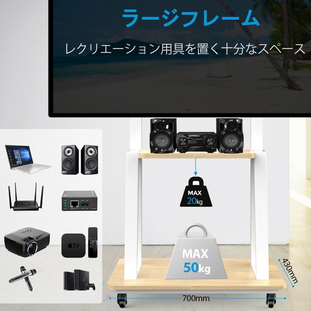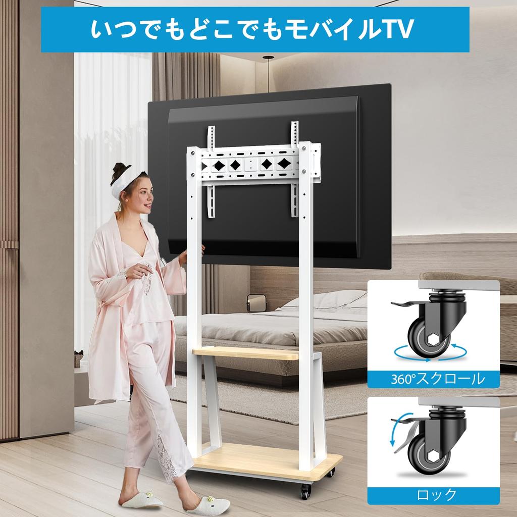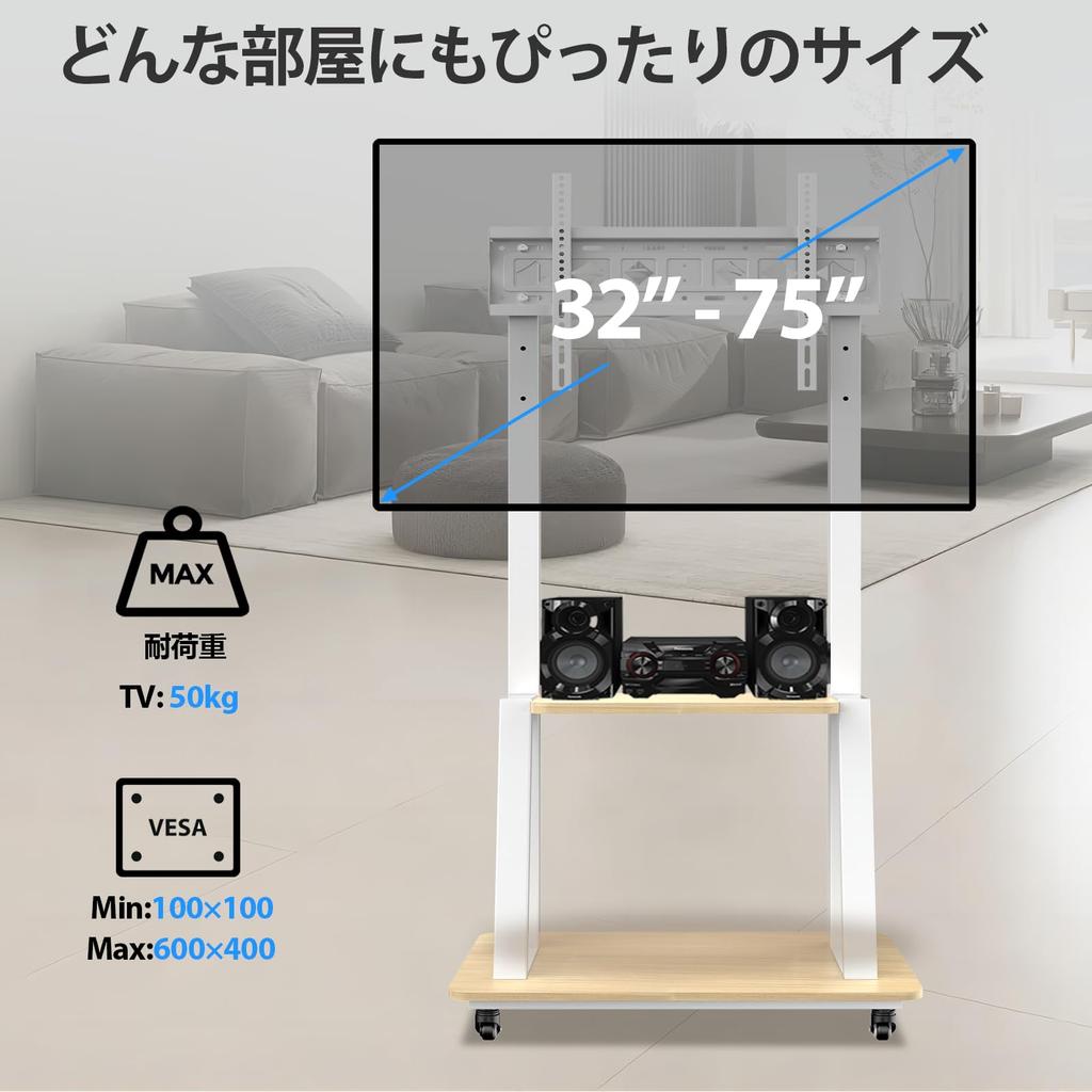 Подставка под телевизор, совместима с 32-75 дюймами, подставка под телевизор, двухстоечная конструкция, мобильная с роликами, высокого типа, грузоподъемность 50 кг, с полкой, регулируемая высота VESA600X400 мм