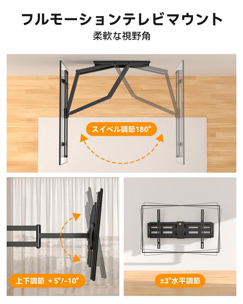 【Настенное крепление для телевизора с супердлинной стрелой 108 см】Это настенное крепление для телевизора можно отрегулировать на расстоянии от 7 до 108 см от стены, что позволяет максимально увеличить угол обзора в разных комнатах и полностью решить проблему видимости.. Идеально подходит для дома, школы, офиса, больницы, выставки, отеля и т. д.. Этот кронштейн для подвешивания телевизора имеет наилучшее расположение на японском рынке и может быть использован практически для любой большой телевизионной сцены.