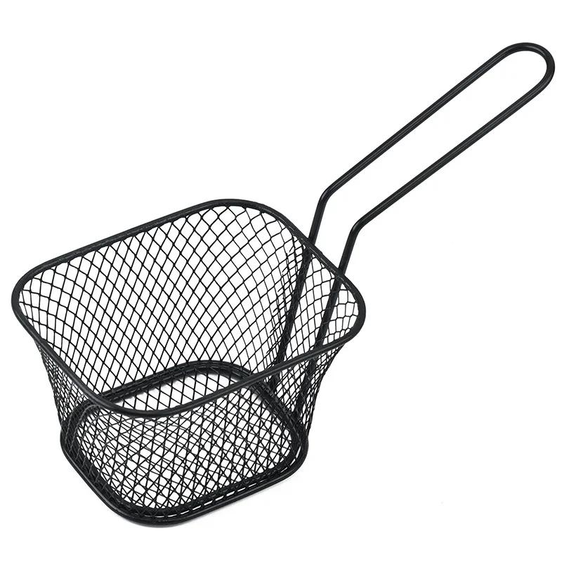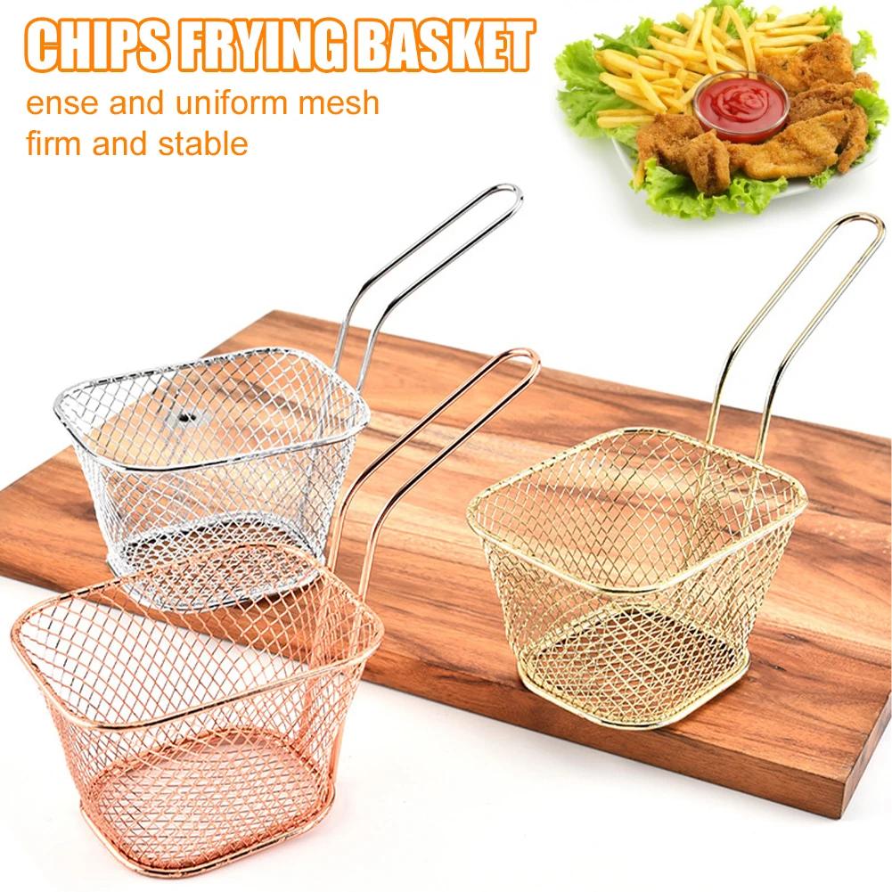 Мини квадратная корзина для жарки, металлический держатель для картофеля фри с ручкой, настольная презентационная сетчатая корзина для еды, кухонные принадлежности, инструменты
