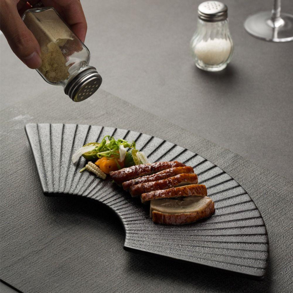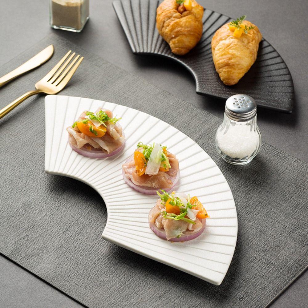 Japanese Style Fan Shaped Striped Plate Durable Dessert Tray Multi-Function Sushi Plate Cake