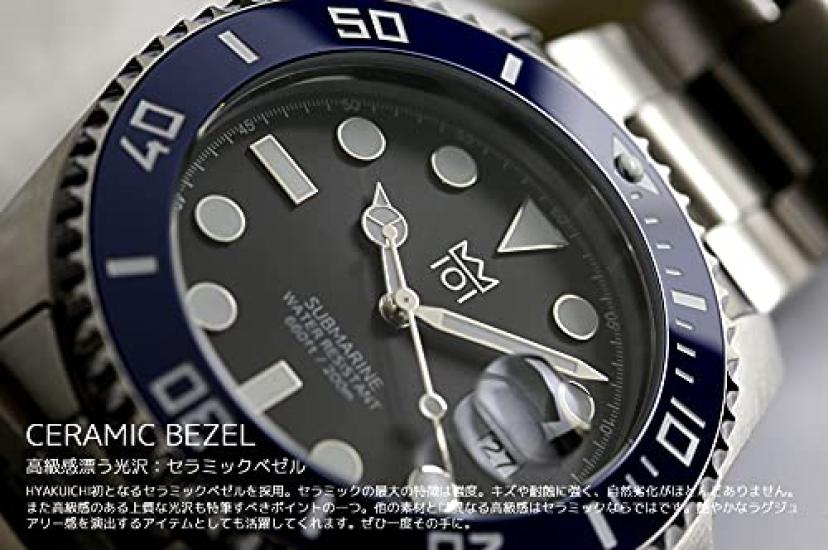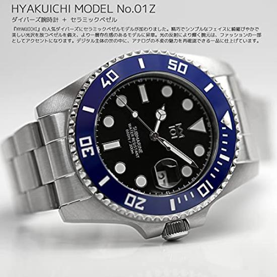 Водонепроницаемые часы Hyakuichi 20 ATM с керамическим безелем, календарем, металлическим ремешком и кварцевым механизмом [HYAKUICHI 101] No.1Z Diver's Men's (Голубовато-черный)