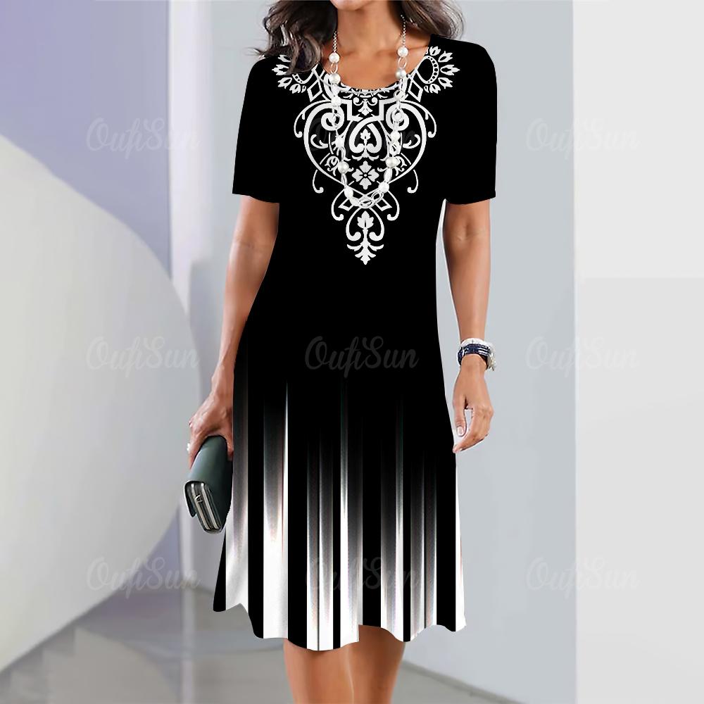 Модная полосатая женская одежда платья простота принт короткий рукав женское платье элегантное черное женское длинное платье пуловер 2024