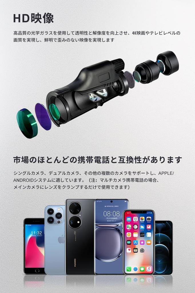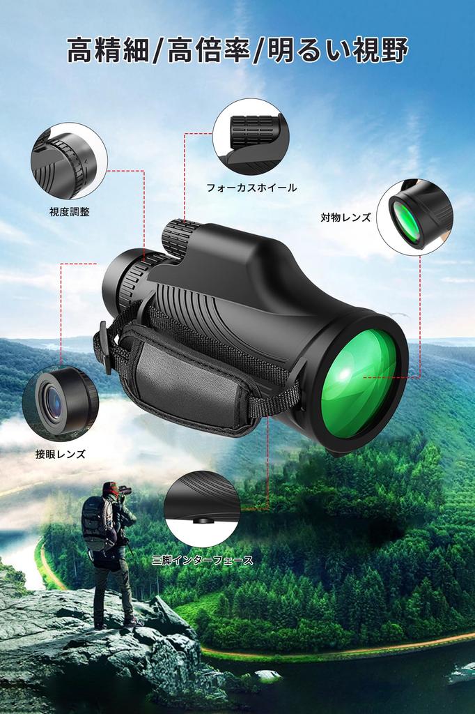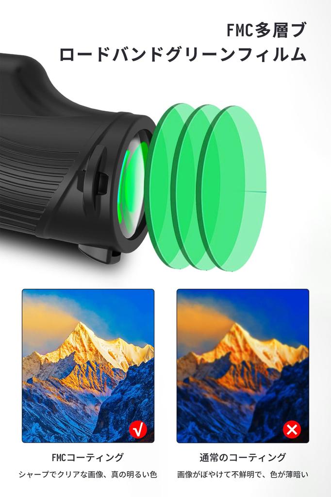 [Многослойная зеленая пленка FMC] Комплект монокулярного телескопа SGEBD изготовлен из полностью оптической многослойной зеленой пленки FMC.. Многослойная зеленая краска FMC смартфонного телескопа прозрачна и ярка, обеспечивает светопропускание 99,5%, высокую четкость и точную цветопередачу.. Идеально подходит для путешествий, альпинизма, наблюдения за дикими птицами, концертов, пейзажей, просмотра спортивных состязаний, наблюдения за луной, самолетами, звездным небом, пейзажами, бейсболом, футболом, охотой, парусным спортом и т. д.