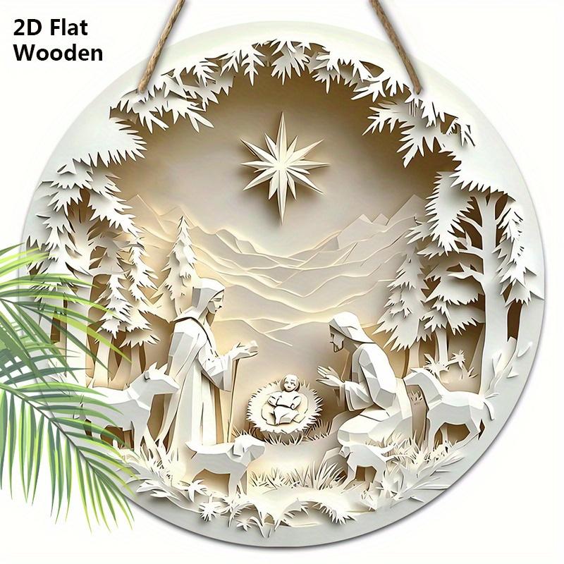5 шт. Рождественский вертеп, деревянная табличка, 2D, плоский рельефный эффект, Иисус гонится за потерянным ягненком, круглая табличка для настенного декора входной двери, идеальное рождественское украшение