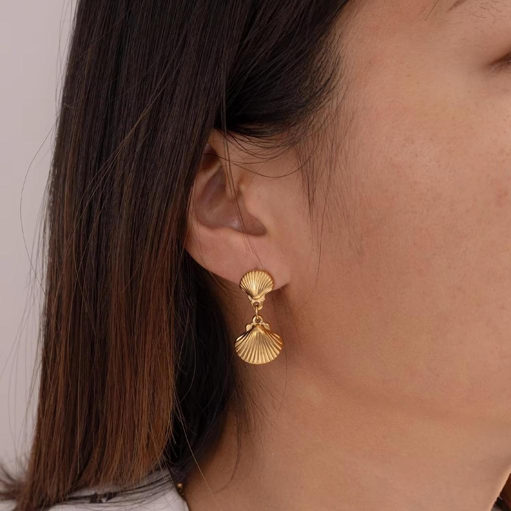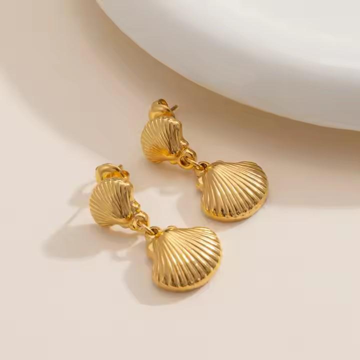 Модные ювелирные изделия 18-каратного золота, классические двойные висячие серьги-подвески, женские водонепроницаемые серьги из нержавеющей стали с ракушками