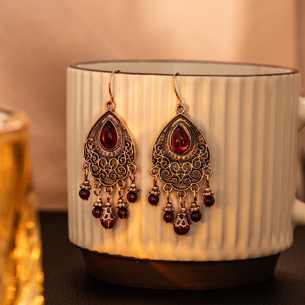Богемный ретро красный узор капли воды серьги кисточки винтажные элитные Sense Temperament украшения для ушей