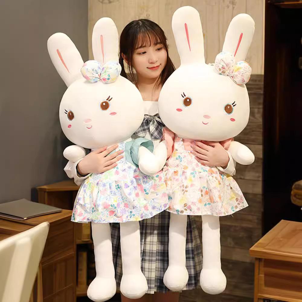 Милая кукла-кролик в цветочном платье, плюшевая игрушка, кукла-девочка, спящая и держащая тряпичная кукла большого размера, супер мягкая — купить товар онлайн с бесплатной доставкой по всему миру!