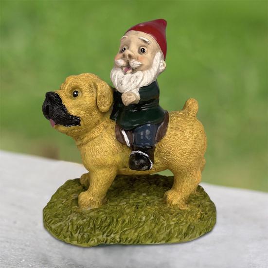 Очаровательный акцент комнаты: Очаровательная фигурка гнома, установленная на спине веселой собаки, служит очаровательным декоративным элементом, который наполнит любую комнату миловидностью и индивидуальностью, создавая восхитительную и праздничную атмосферу.