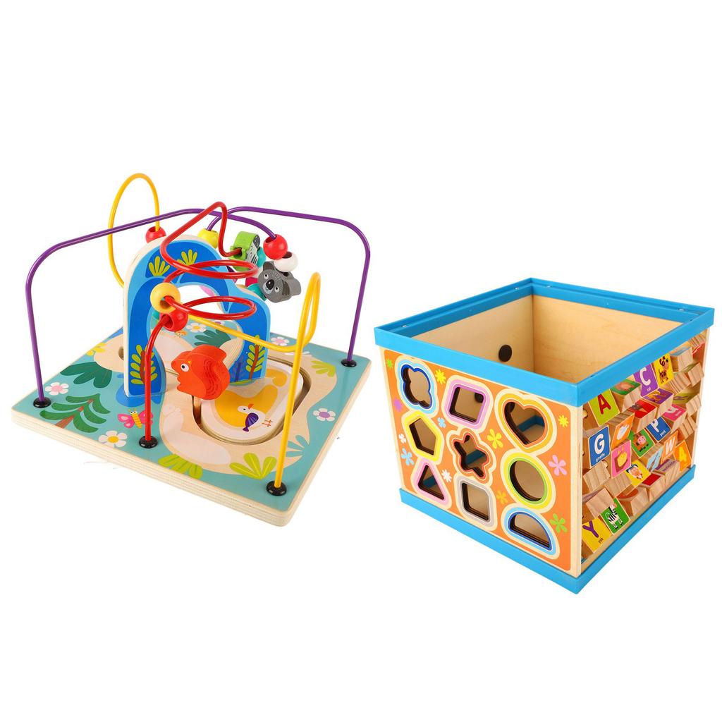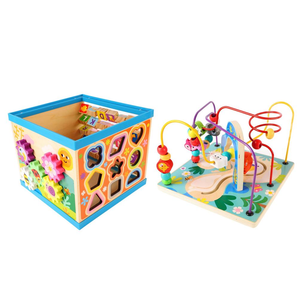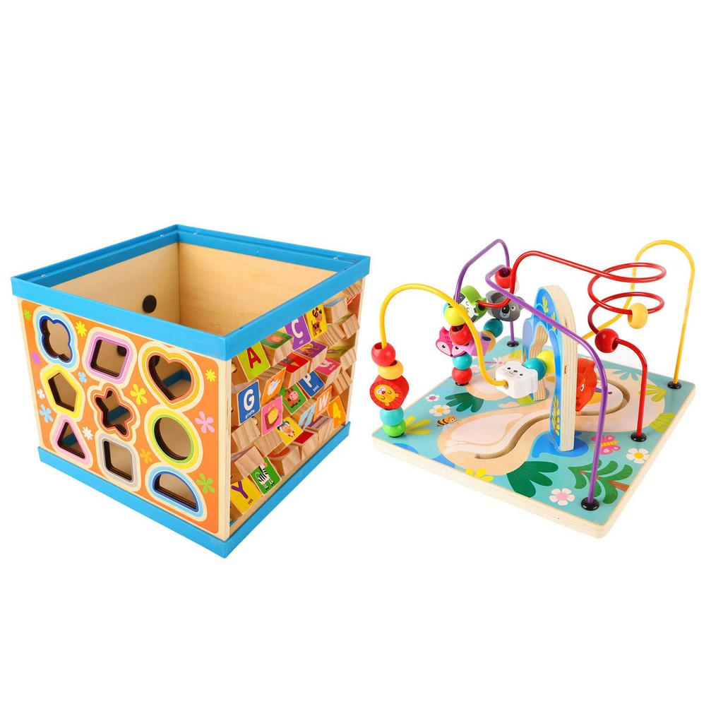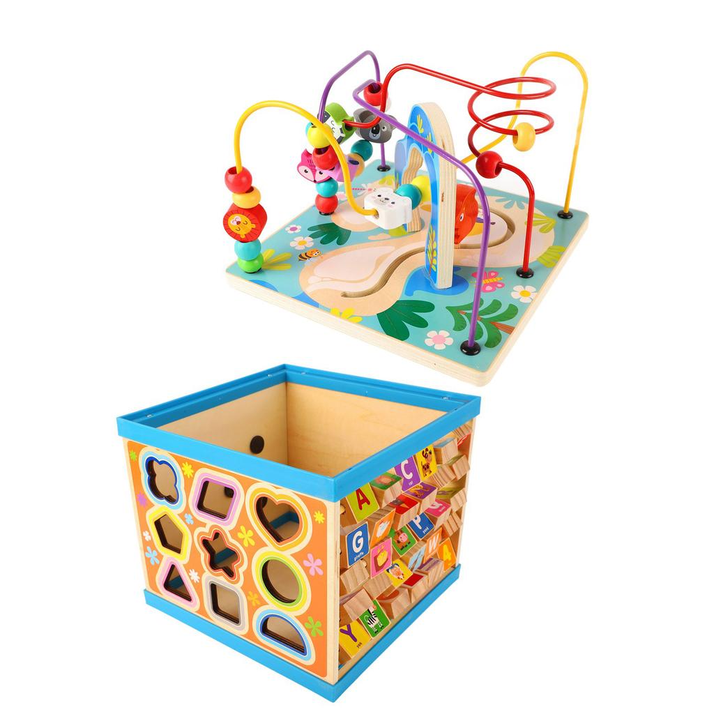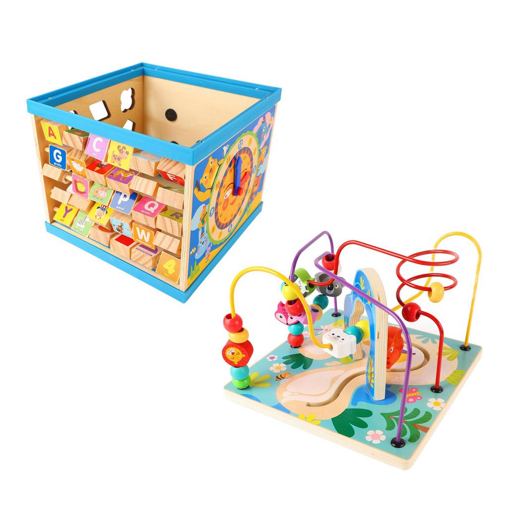 Деревянный детский развивающий кубик, многофункциональный кубик с бусинами, 8 в 1, детский развивающий кубик, образовательный