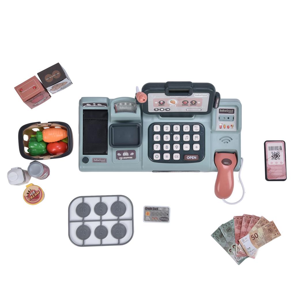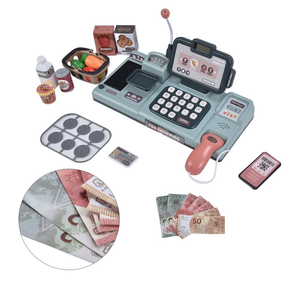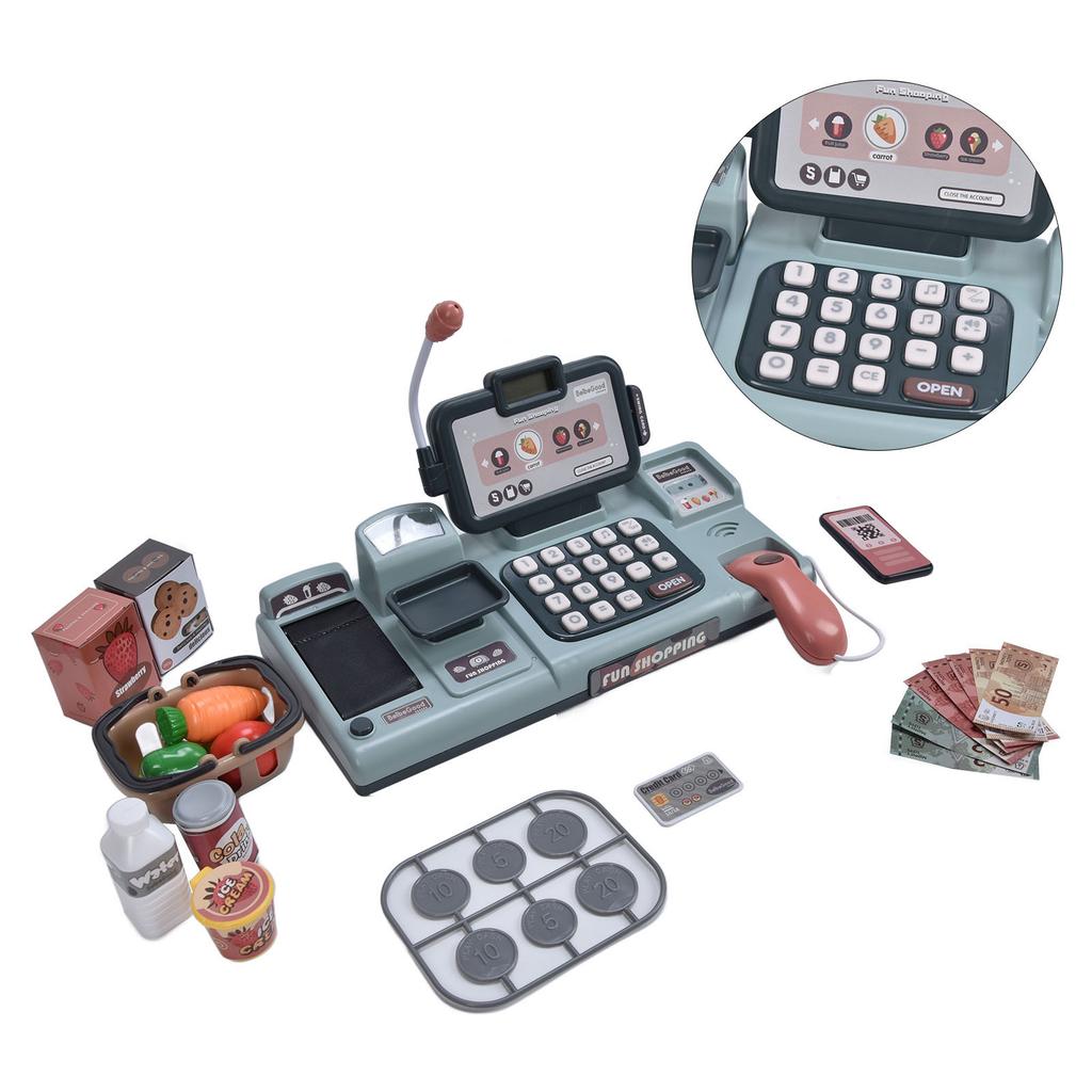 Детская игрушка-кассовый аппарат, ролевая игра, электронная игрушка-кассовый аппарат со световыми и звуковыми эффектами, синяя
